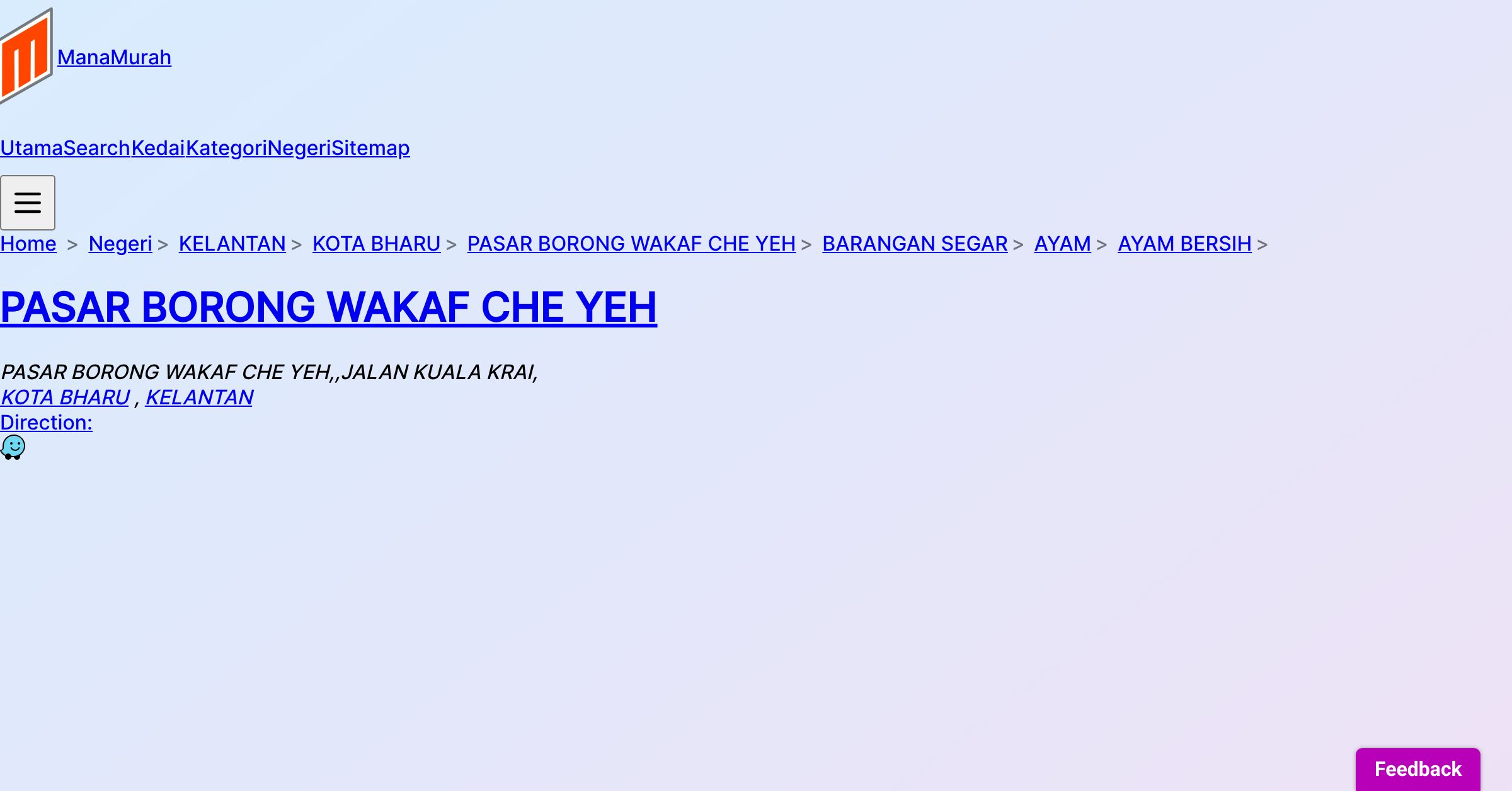 PASAR BORONG WAKAF CHE YEH,,JALAN KUALA KRAI,