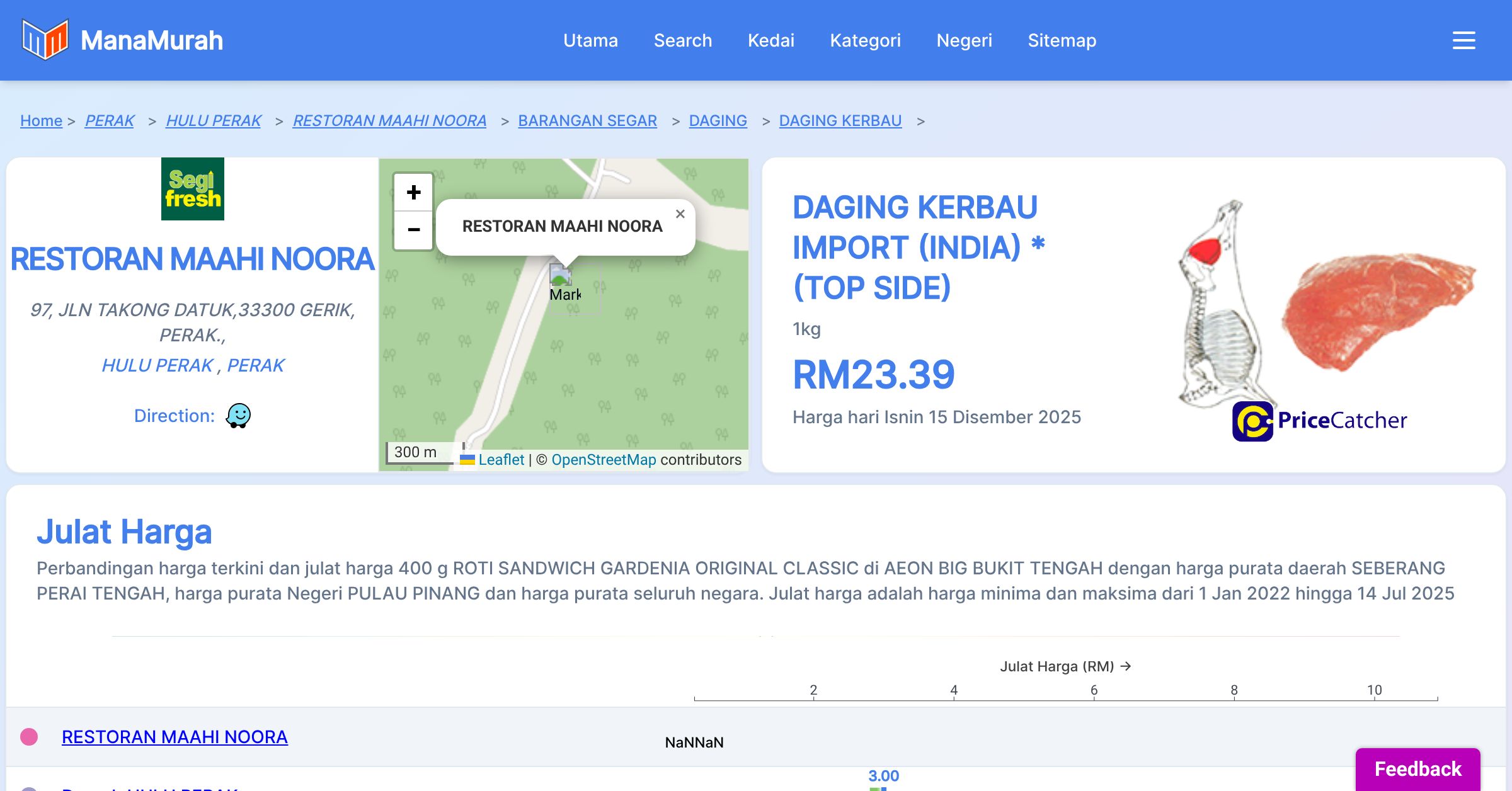 Senarai harga barang di RESTORAN MAAHI NOORA