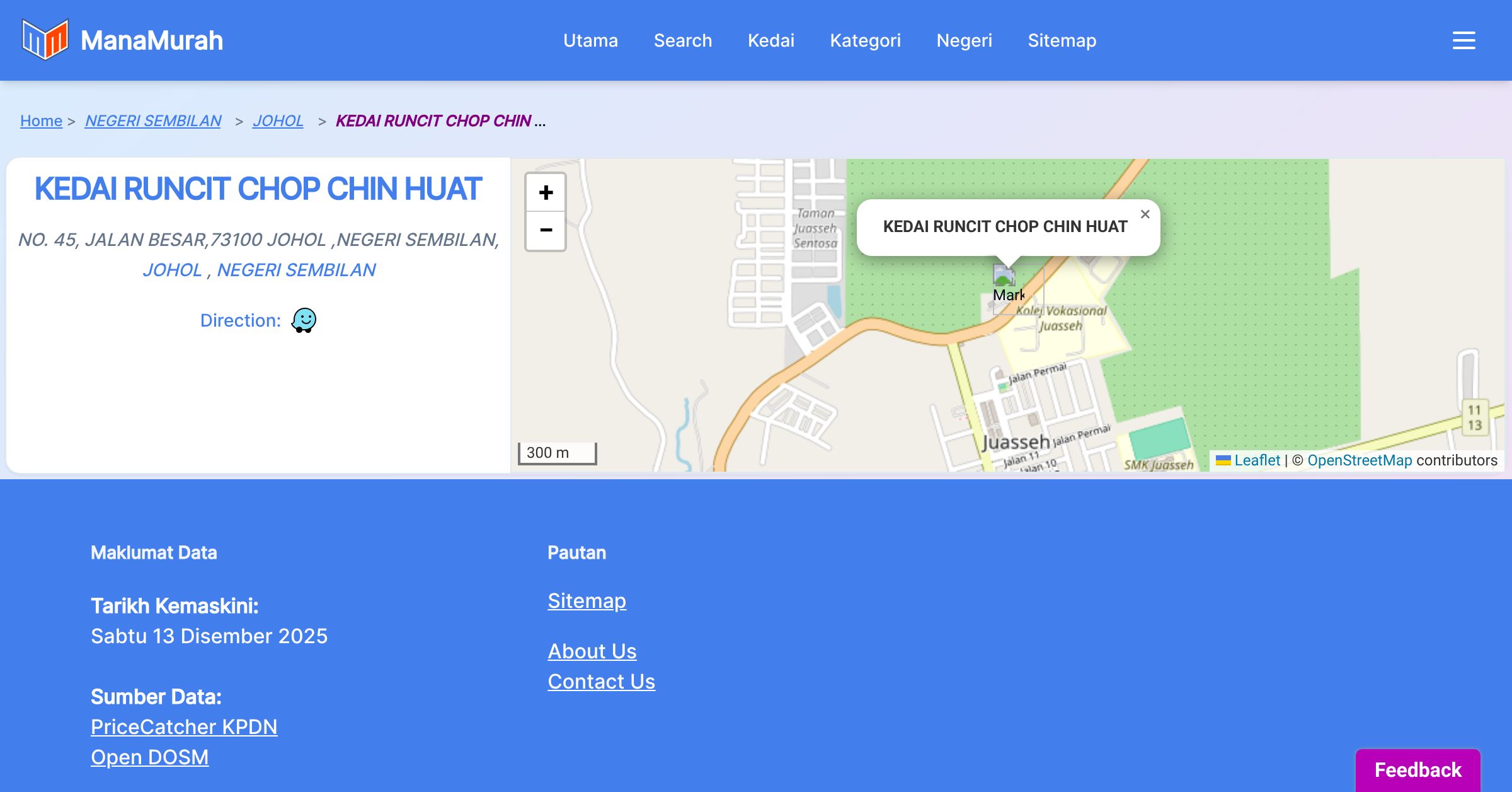 Prices are aggregated from public retail sources (including PriceCatcher KPDN and Open DOSM) and may not reflect real-time in-store prices. ManaMurah.com, DOSM, and KPDN assume no responsibility for any inaccuracies or omissions.