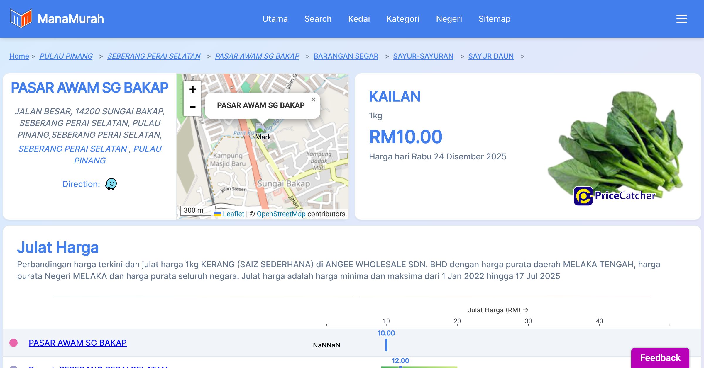 Tiada maklumat harga KAILAN di Daerah SEBERANG PERAI SELATAN