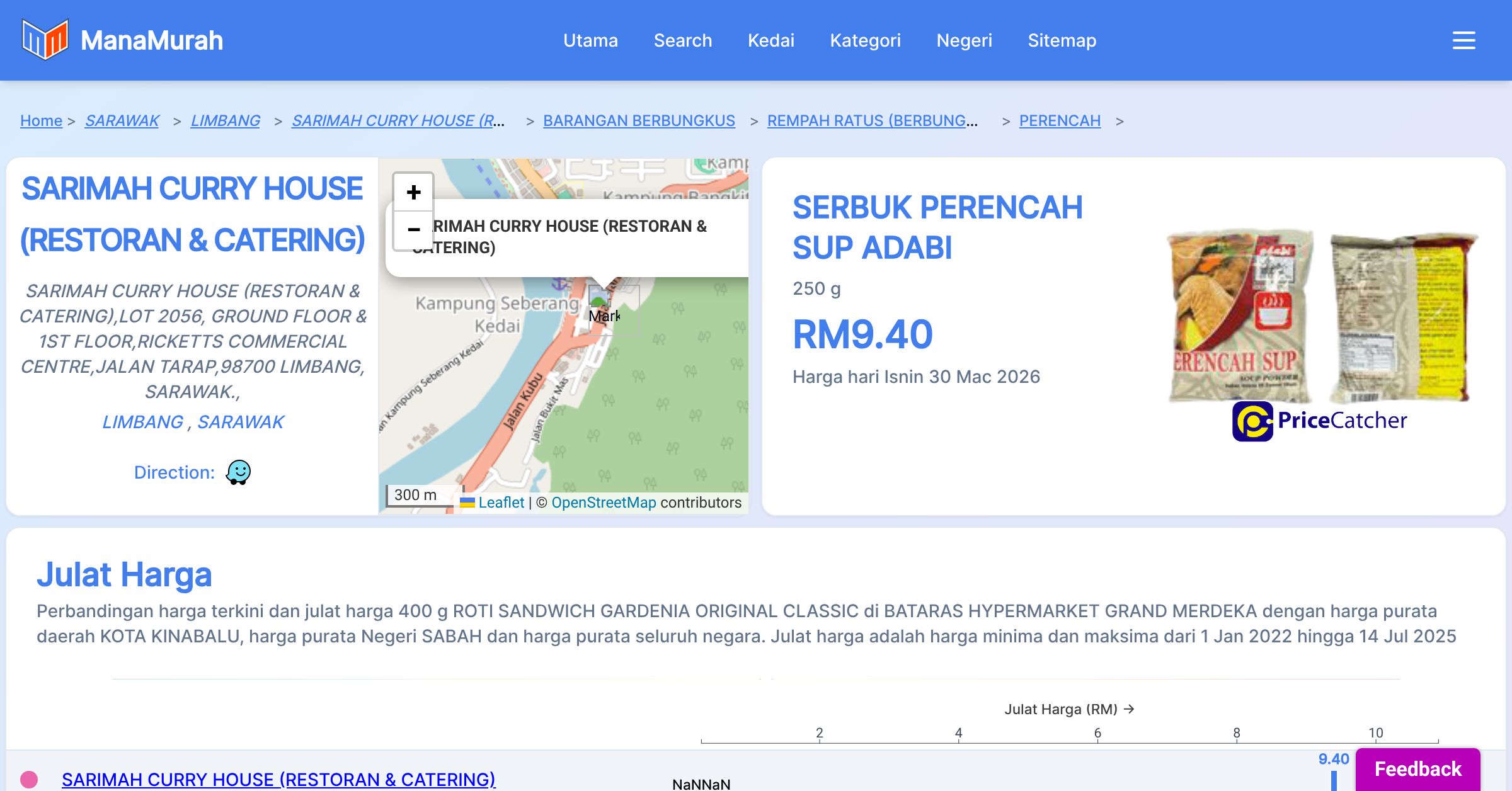Tiada maklumat harga SERBUK PERENCAH SUP ADABI di Daerah LIMBANG pada minggu ke-14 tahun 2026 dari 30 Mac hingga 2 April