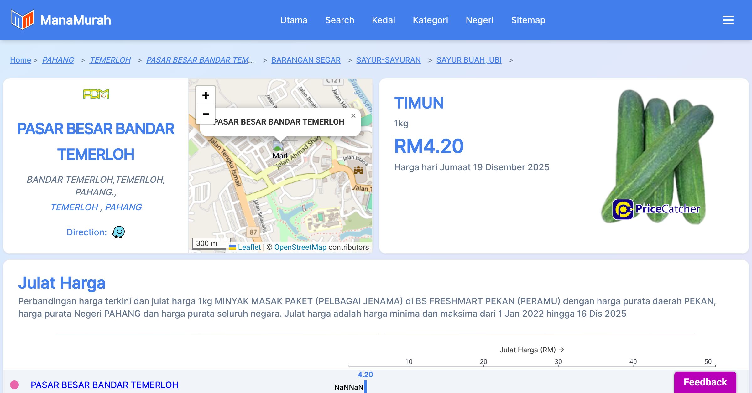 Tiada maklumat harga TIMUN di Daerah TEMERLOH