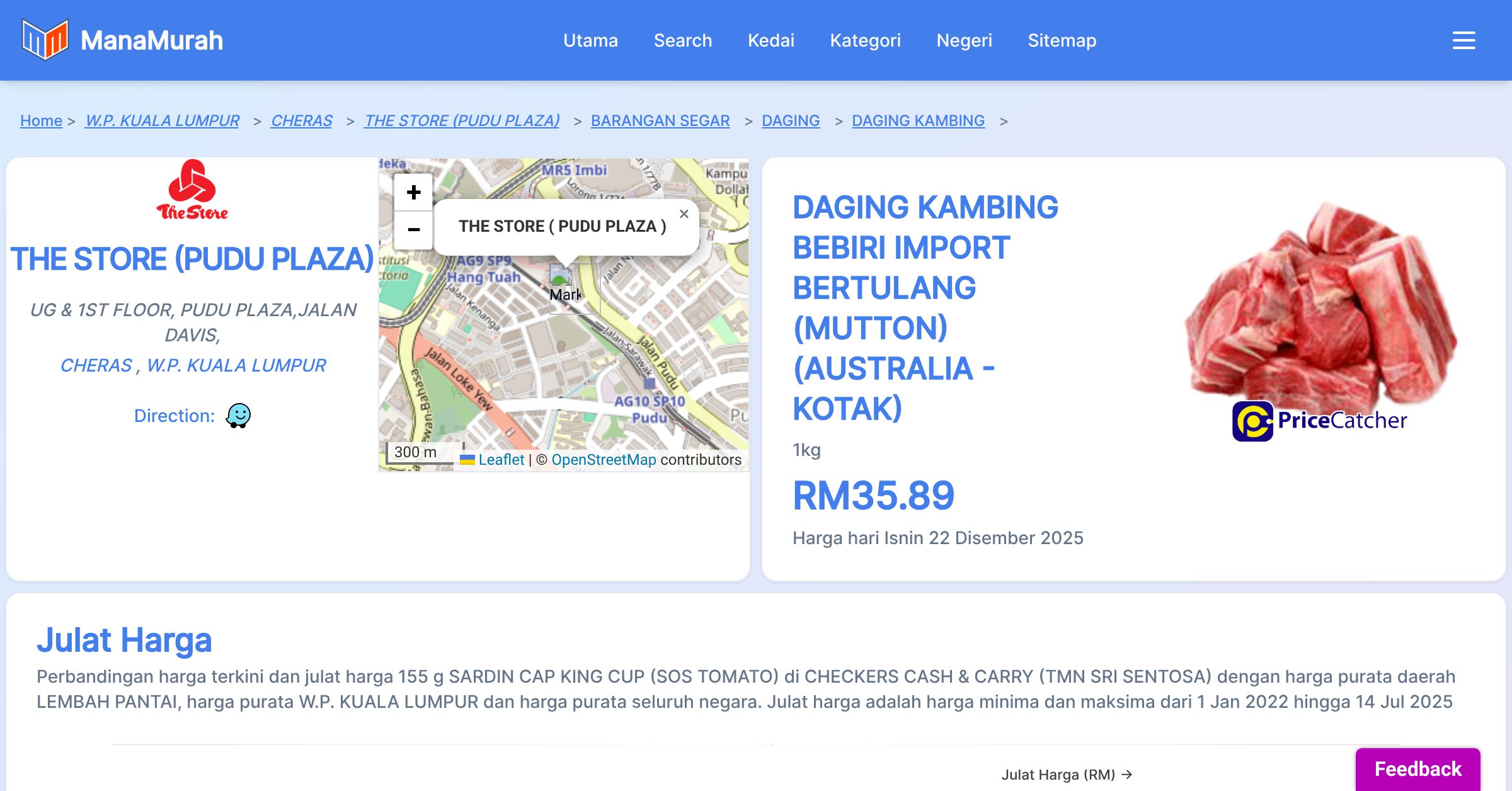 Tiada maklumat harga DAGING KAMBING BEBIRI IMPORT BERTULANG (MUTTON) (AUSTRALIA - KOTAK) di CHERAS pada minggu ke-52 tahun 2025 dari 22 Disember 2025