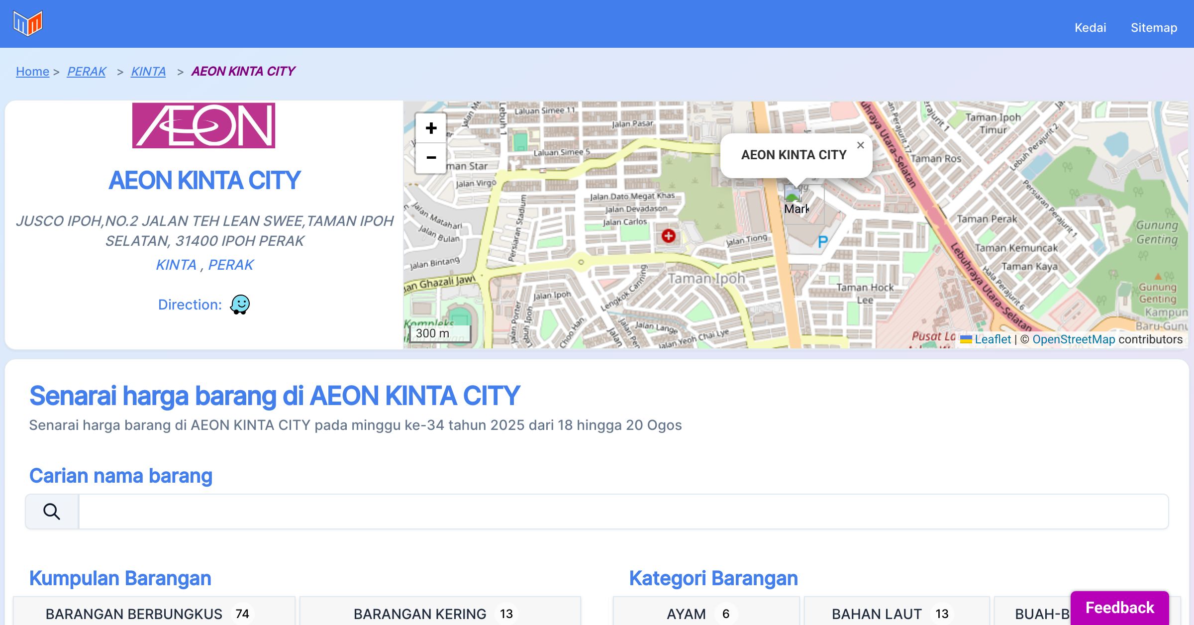 Maklumat harga adalah semasa pemantauan dibuat dan untuk tujuan sebagai rujukan sahaja. Pihak ManaMurah.com, DOSM, Portal PriceCatcher dan KPDN tidak bertanggungjawab atas sebarang kesilapan, kekurangan, ketidaktepatan, atau dari sebarang implikasi dari maklumat yang dipaparkan.