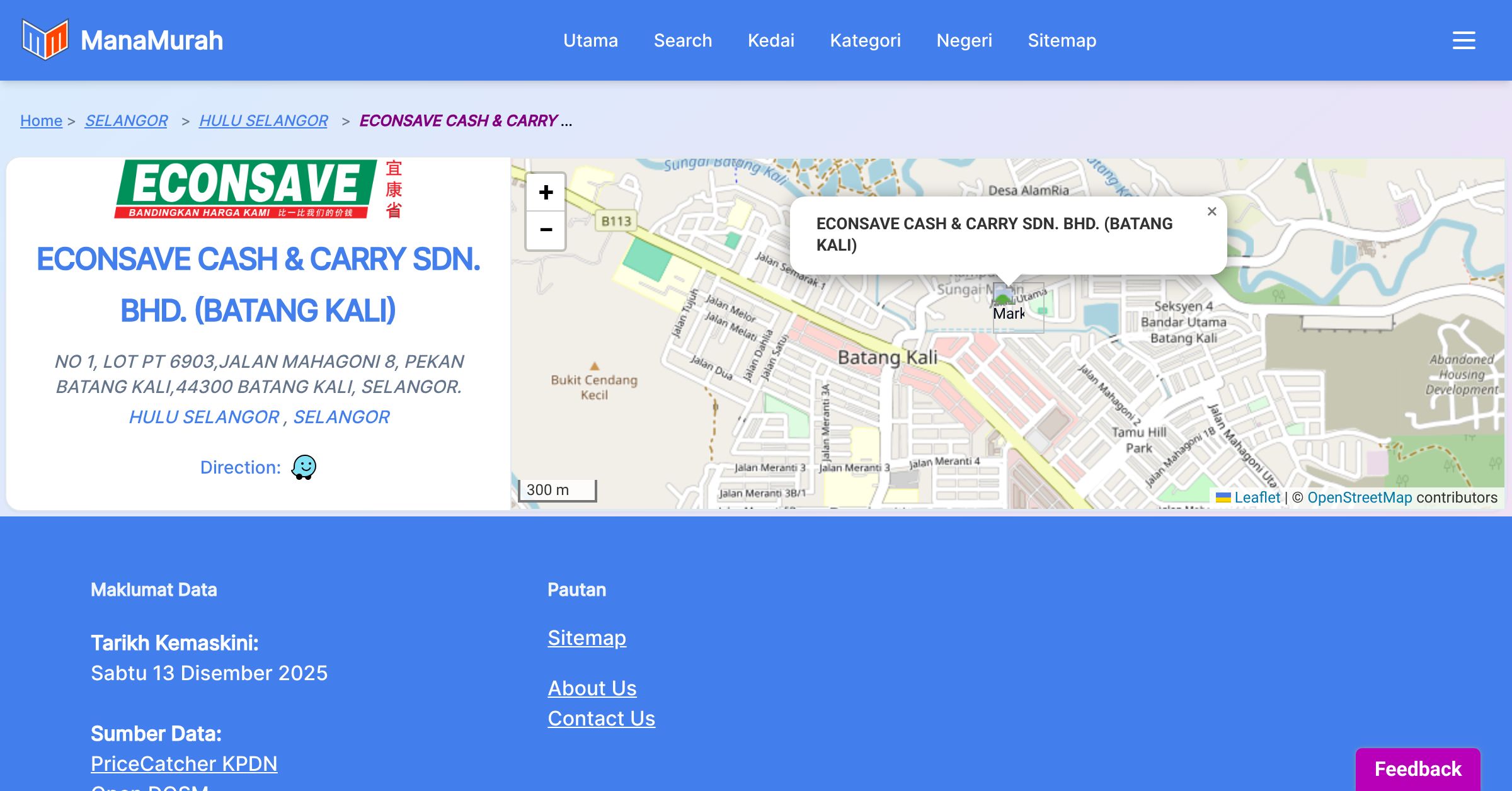 Prices are aggregated from public retail sources (including PriceCatcher KPDN and Open DOSM) and may not reflect real-time in-store prices. ManaMurah.com, DOSM, and KPDN assume no responsibility for any inaccuracies or omissions.