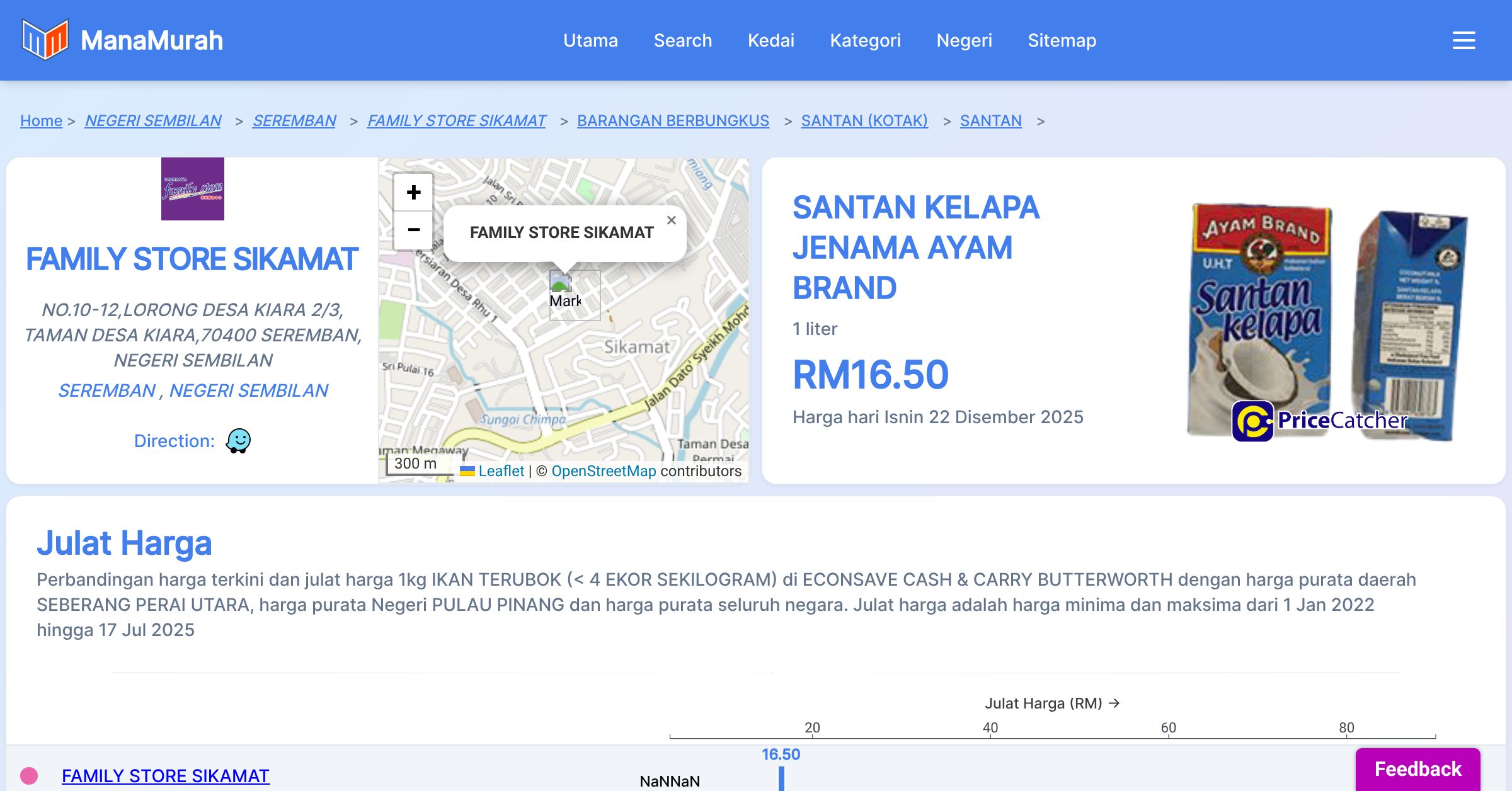 Tiada maklumat harga SANTAN KELAPA JENAMA AYAM BRAND di Daerah SEREMBAN pada minggu ke-52 tahun 2025 dari 22 hingga 24 Disember