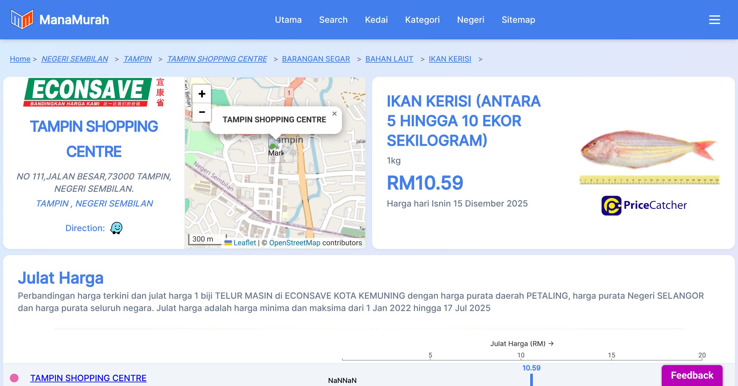 Senarai harga barang di TAMPIN SHOPPING CENTRE