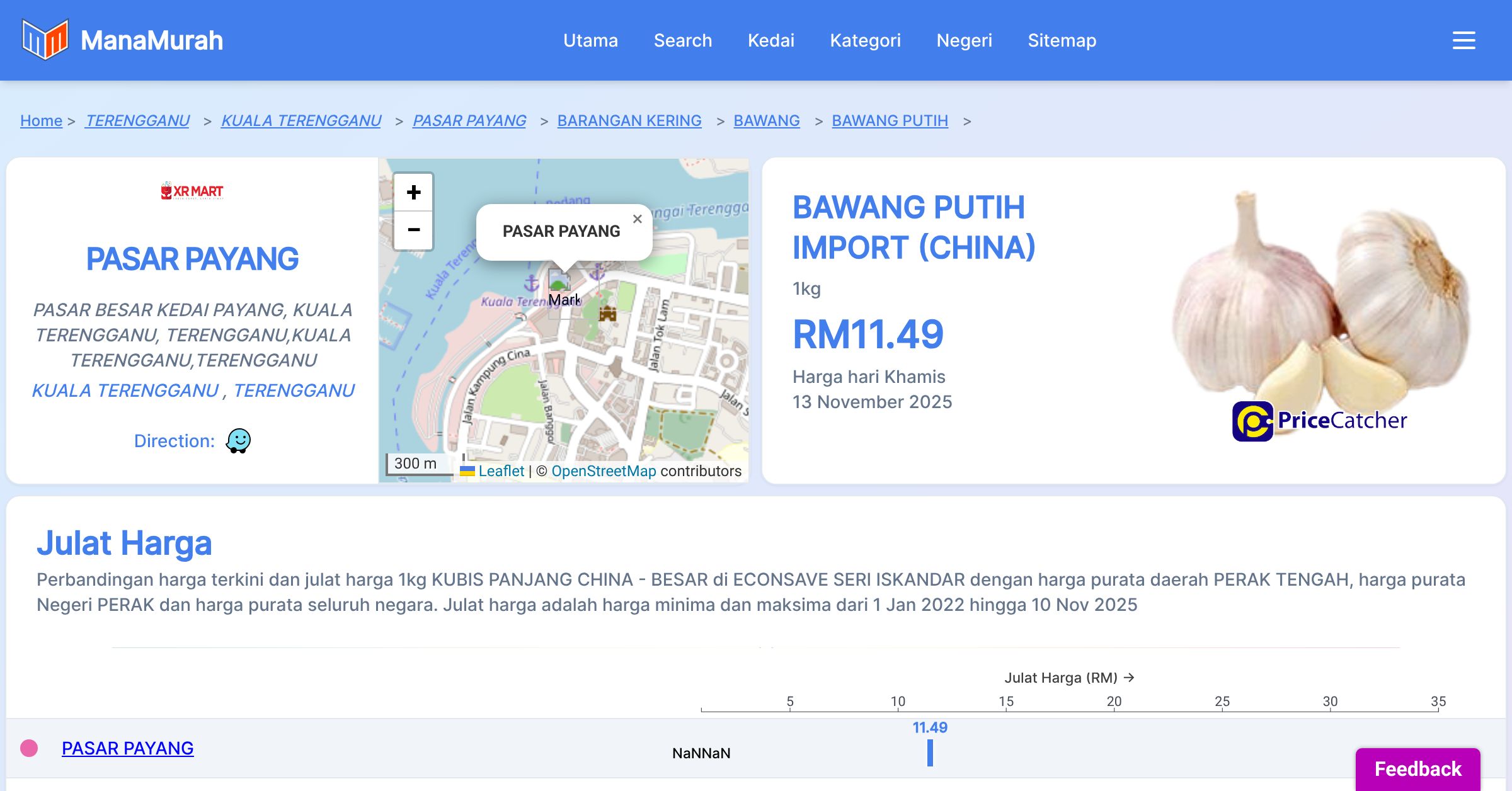 Tiada maklumat harga BAWANG PUTIH IMPORT (CHINA) di Daerah KUALA TERENGGANU
