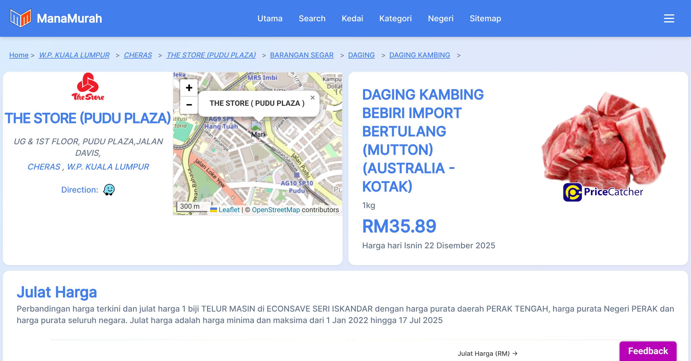 Tiada maklumat harga DAGING KAMBING BEBIRI IMPORT BERTULANG (MUTTON) (AUSTRALIA - KOTAK) di CHERAS