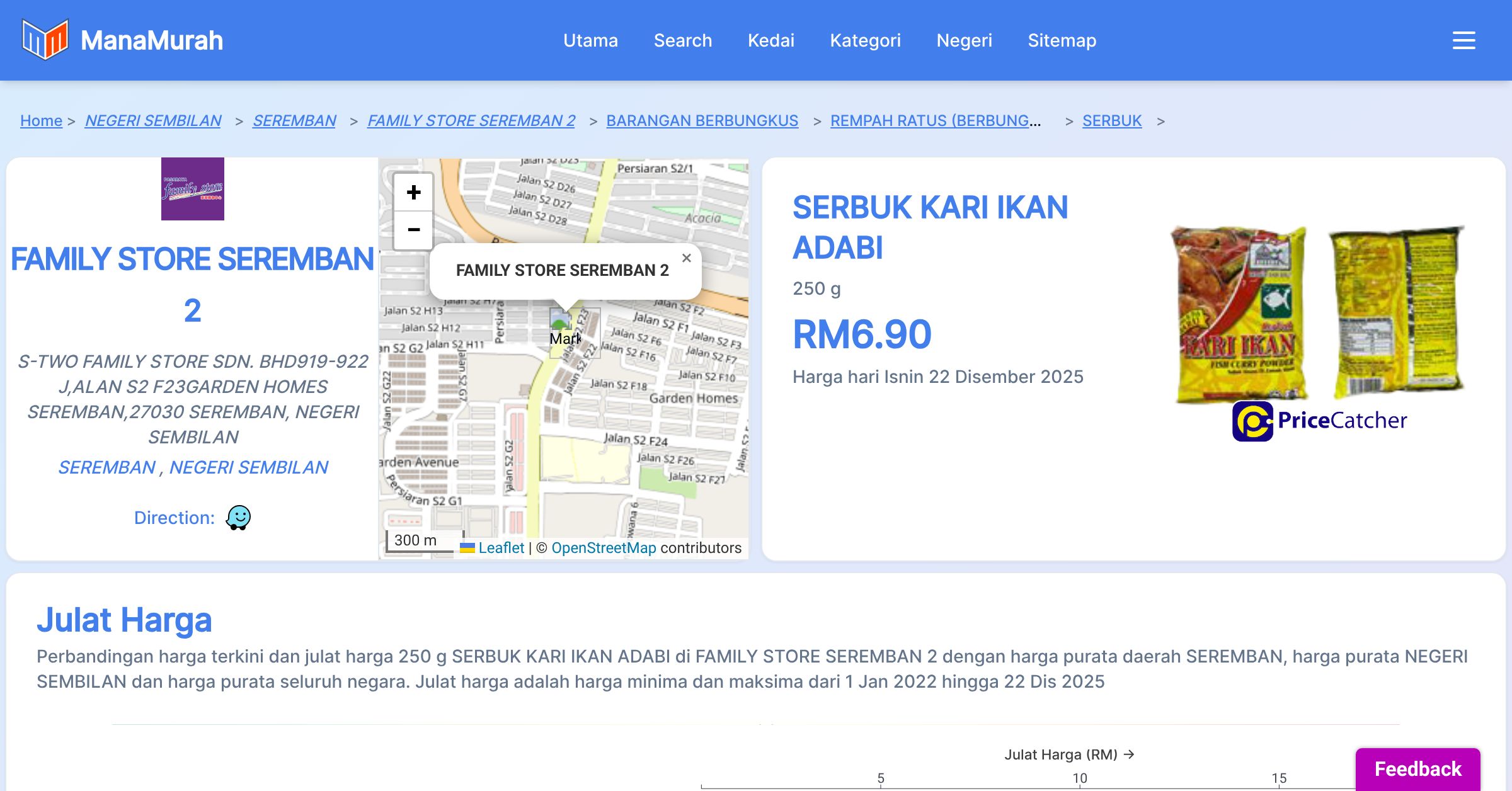Perbandingan harga terkini dan julat harga 250 g SERBUK KARI IKAN ADABI di FAMILY STORE SEREMBAN 2 dengan harga purata daerah SEREMBAN, harga purata NEGERI SEMBILAN dan harga purata seluruh negara. Julat harga adalah harga minima dan maksima dari 1 Jan 2022 hingga 22 Dis 2025