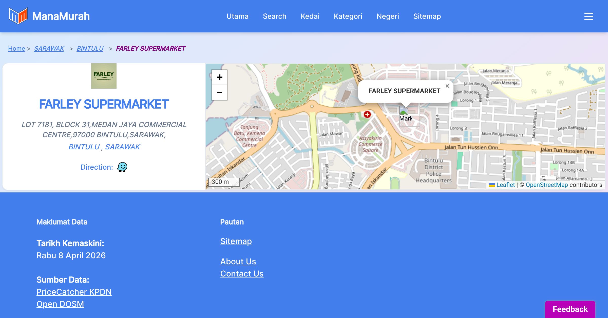 Prices are aggregated from public retail sources (including PriceCatcher KPDN and Open DOSM) and may not reflect real-time in-store prices. ManaMurah.com, DOSM, and KPDN assume no responsibility for any inaccuracies or omissions.