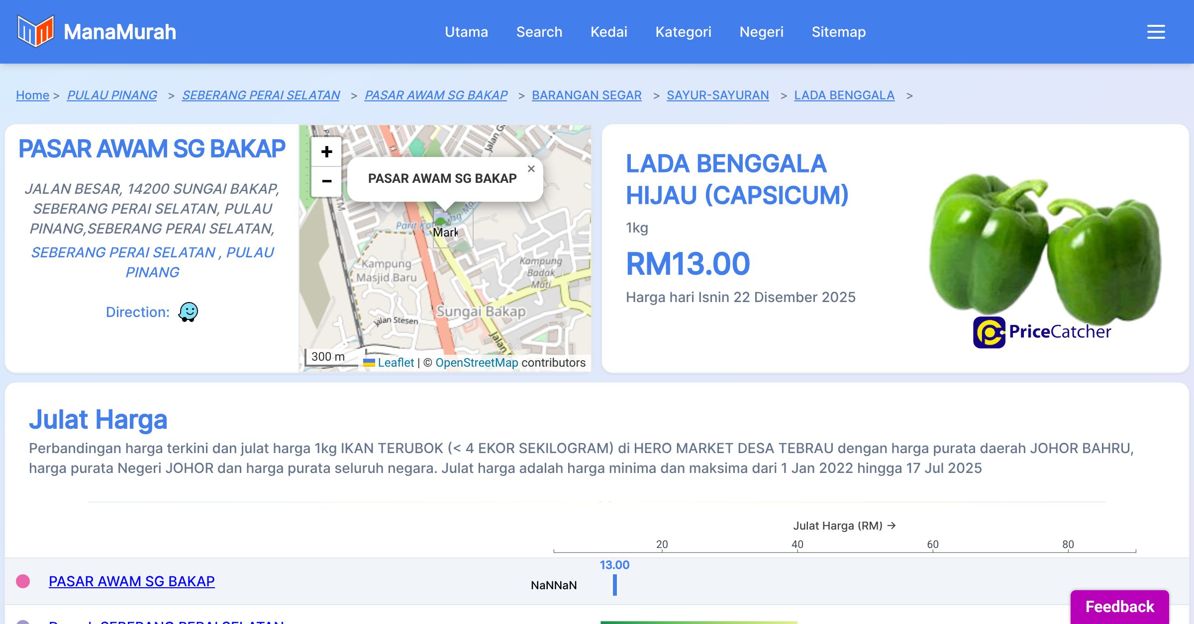 Senarai harga barang di PASAR AWAM SG BAKAP