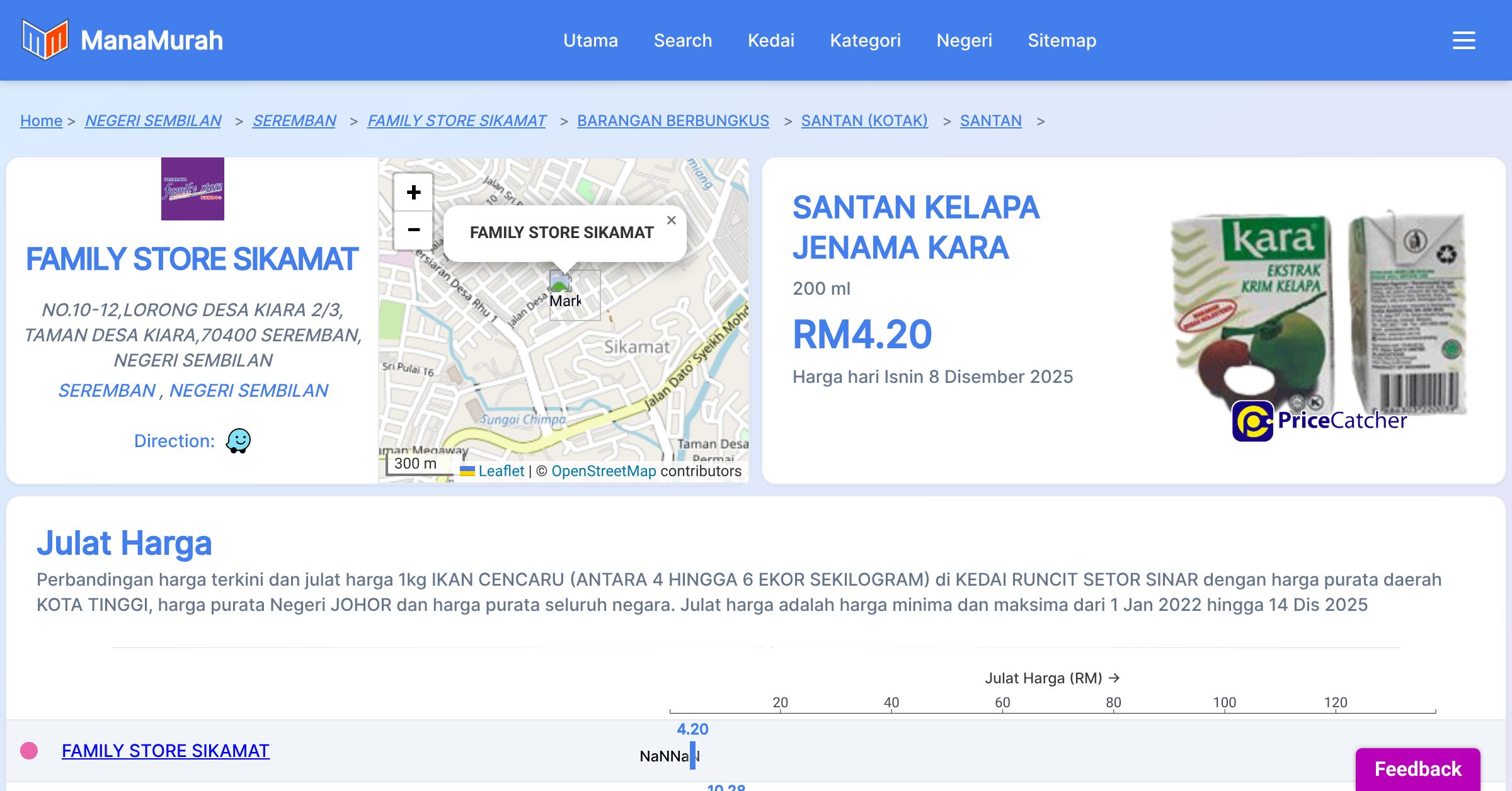 Tiada maklumat harga SANTAN KELAPA JENAMA KARA di Daerah SEREMBAN pada minggu ke-50 tahun 2025 dari 8 hingga 14 Disember