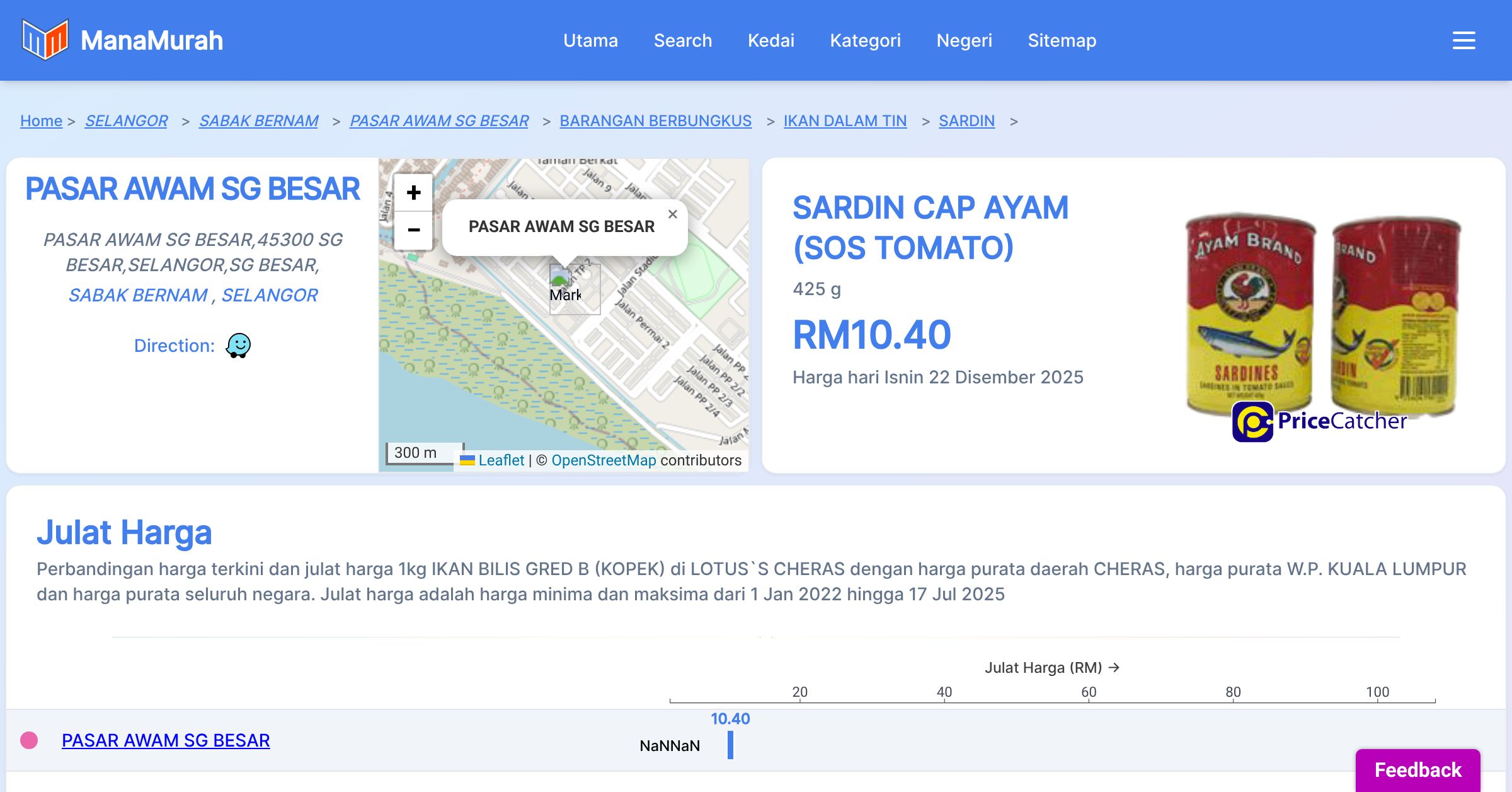 Senarai harga barang di PASAR AWAM SG BESAR