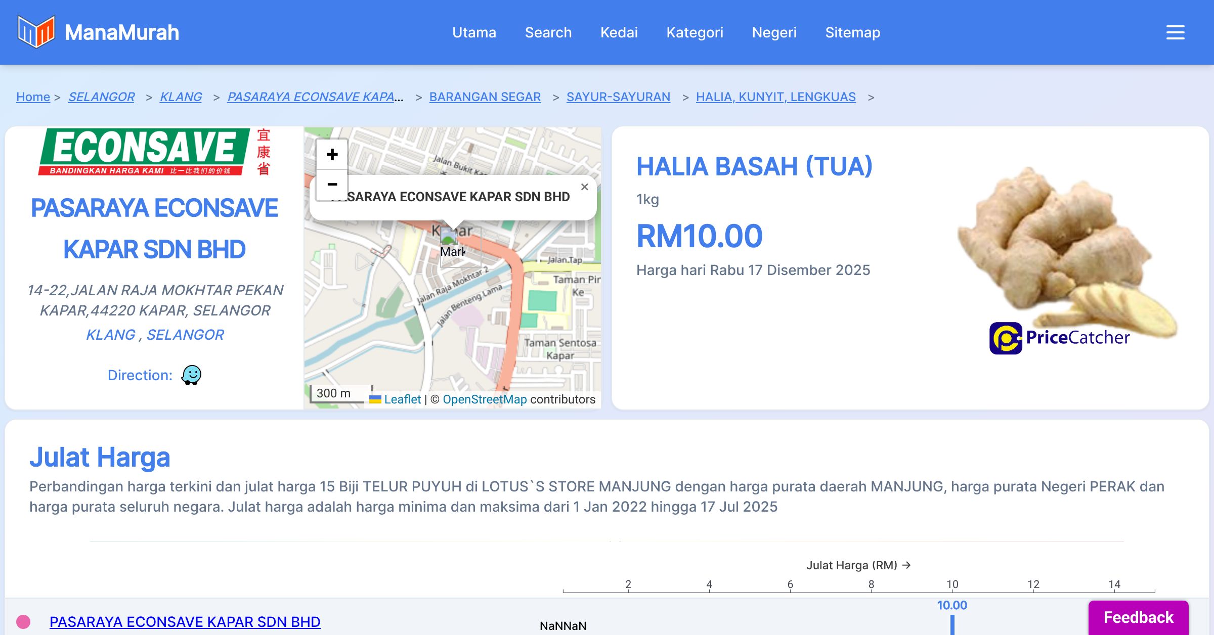 Senarai harga barang di CHUA KAH SENG SUPERMARKET PENAMPANG