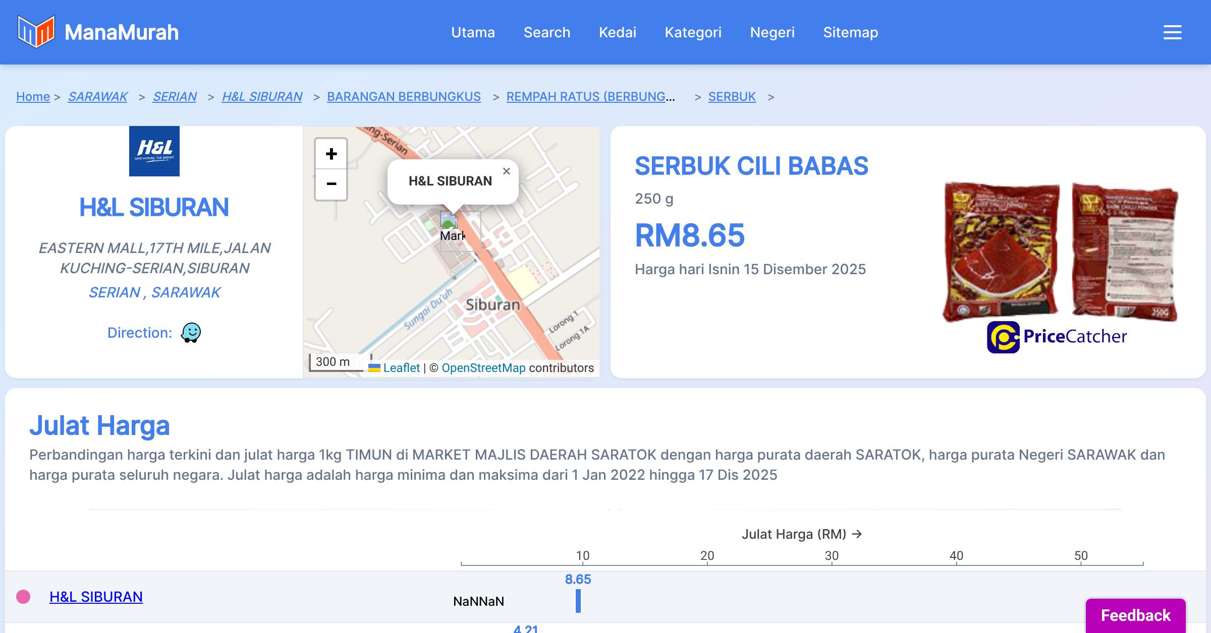 Tiada maklumat harga SERBUK CILI BABAS di Daerah SERIAN
