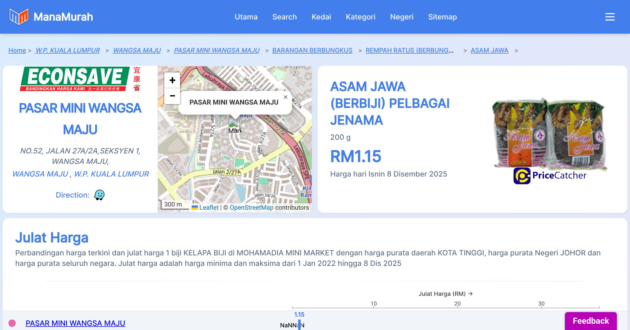 Senarai harga barang di PASAR MINI WANGSA MAJU