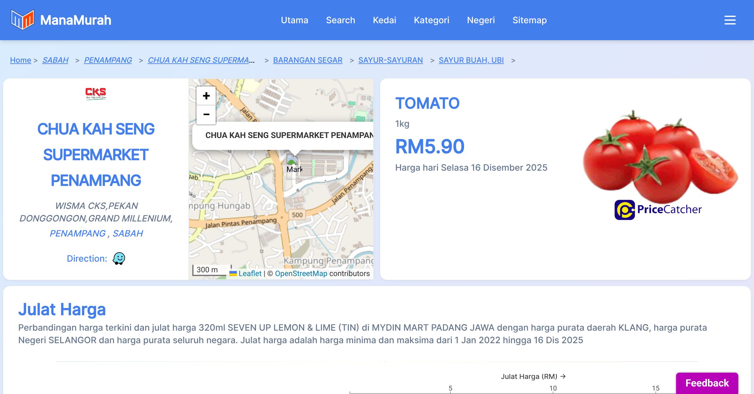 Senarai harga barang di CHUA KAH SENG SUPERMARKET PENAMPANG