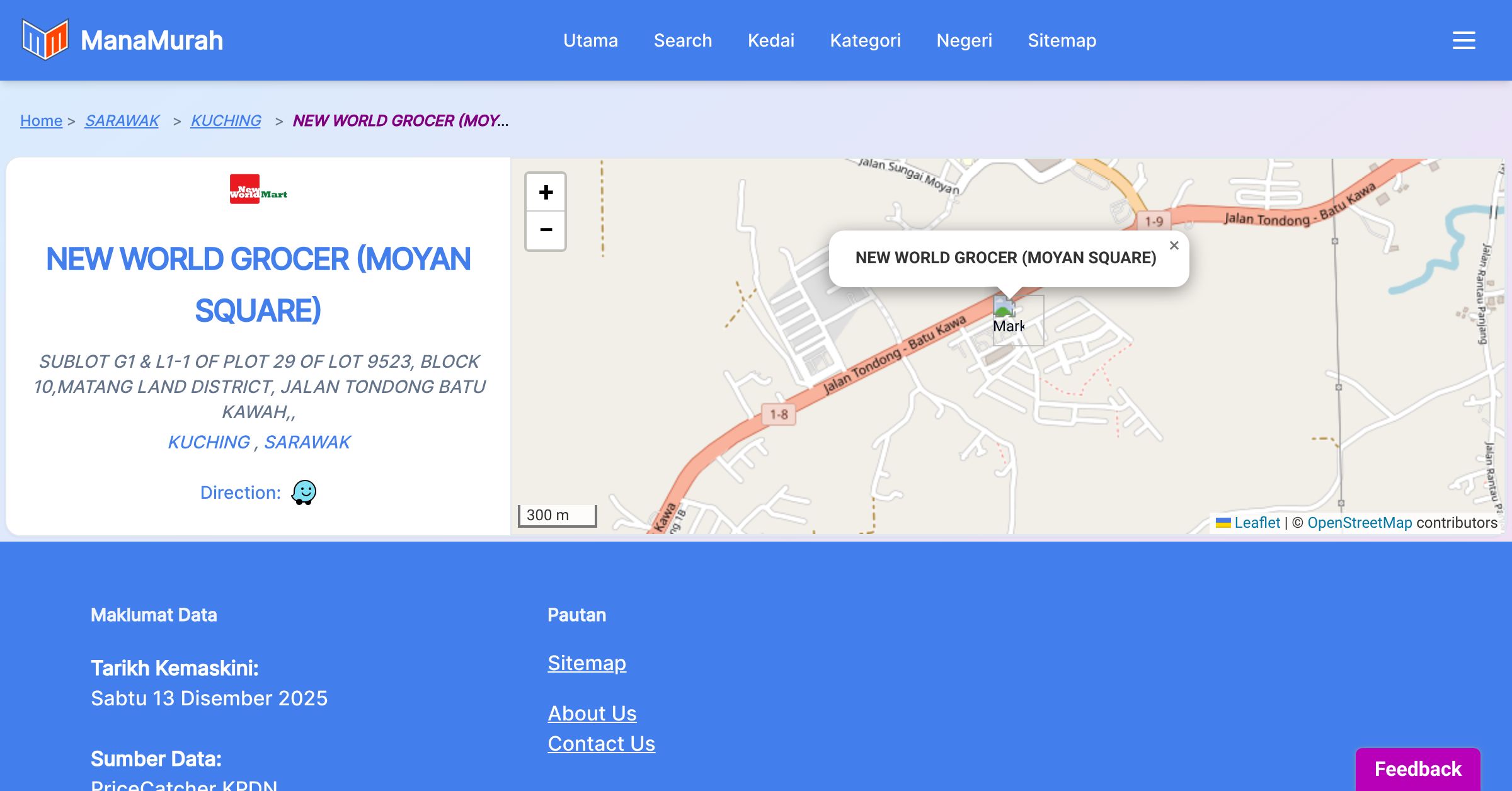 Prices are aggregated from public retail sources (including PriceCatcher KPDN and Open DOSM) and may not reflect real-time in-store prices. ManaMurah.com, DOSM, and KPDN assume no responsibility for any inaccuracies or omissions.