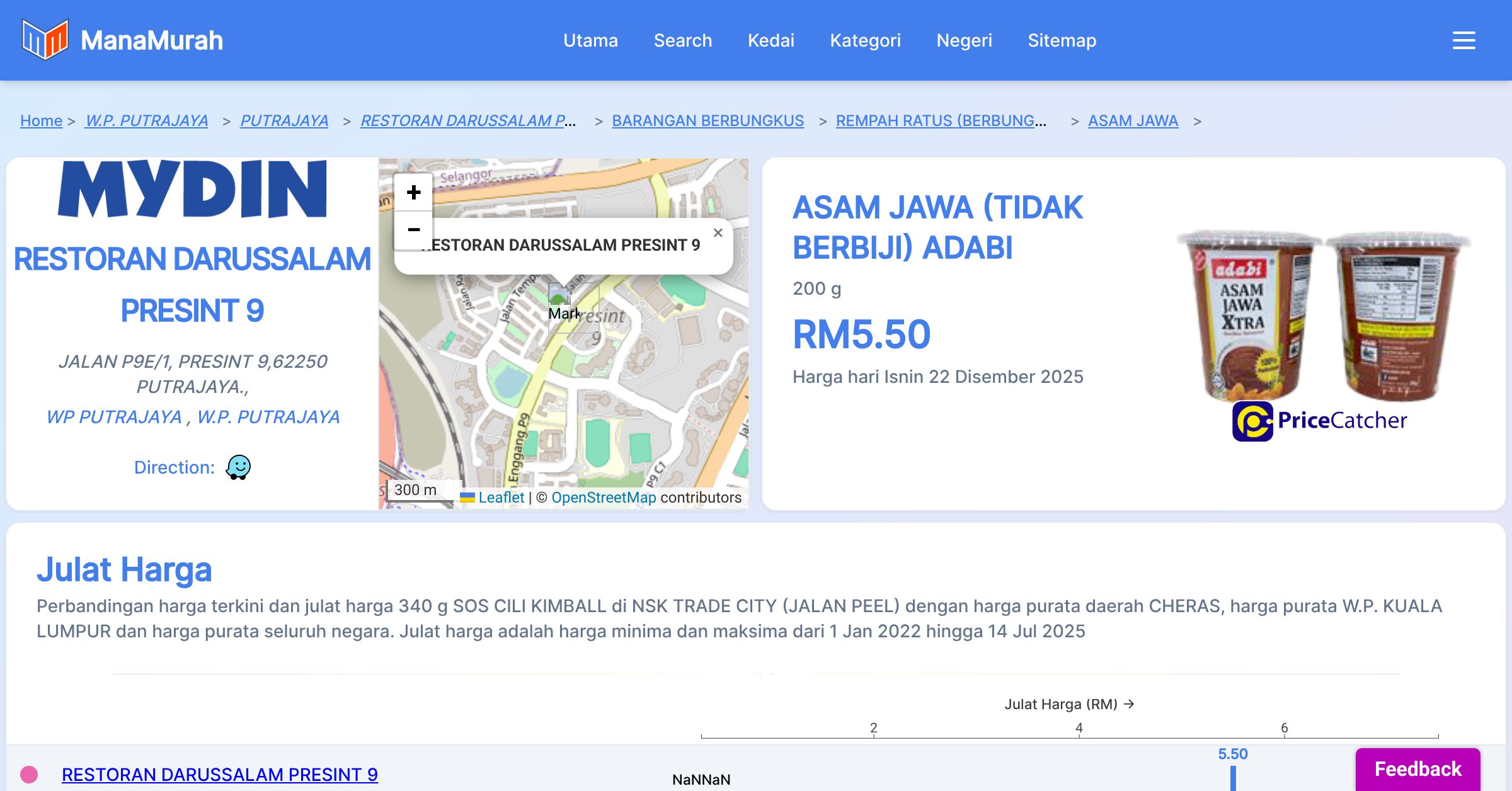 Senarai harga barang di RESTORAN DARUSSALAM PRESINT 9
