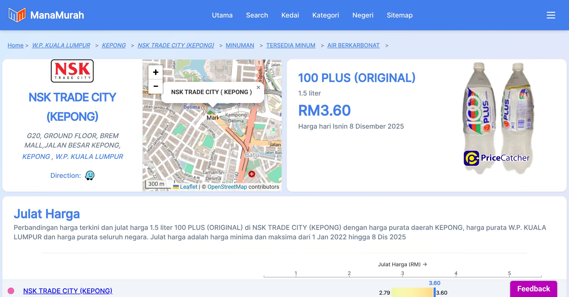 Tiada maklumat harga 100 PLUS (ORIGINAL) di KEPONG pada minggu ke-50 tahun 2025 dari 8 hingga 14 Disember