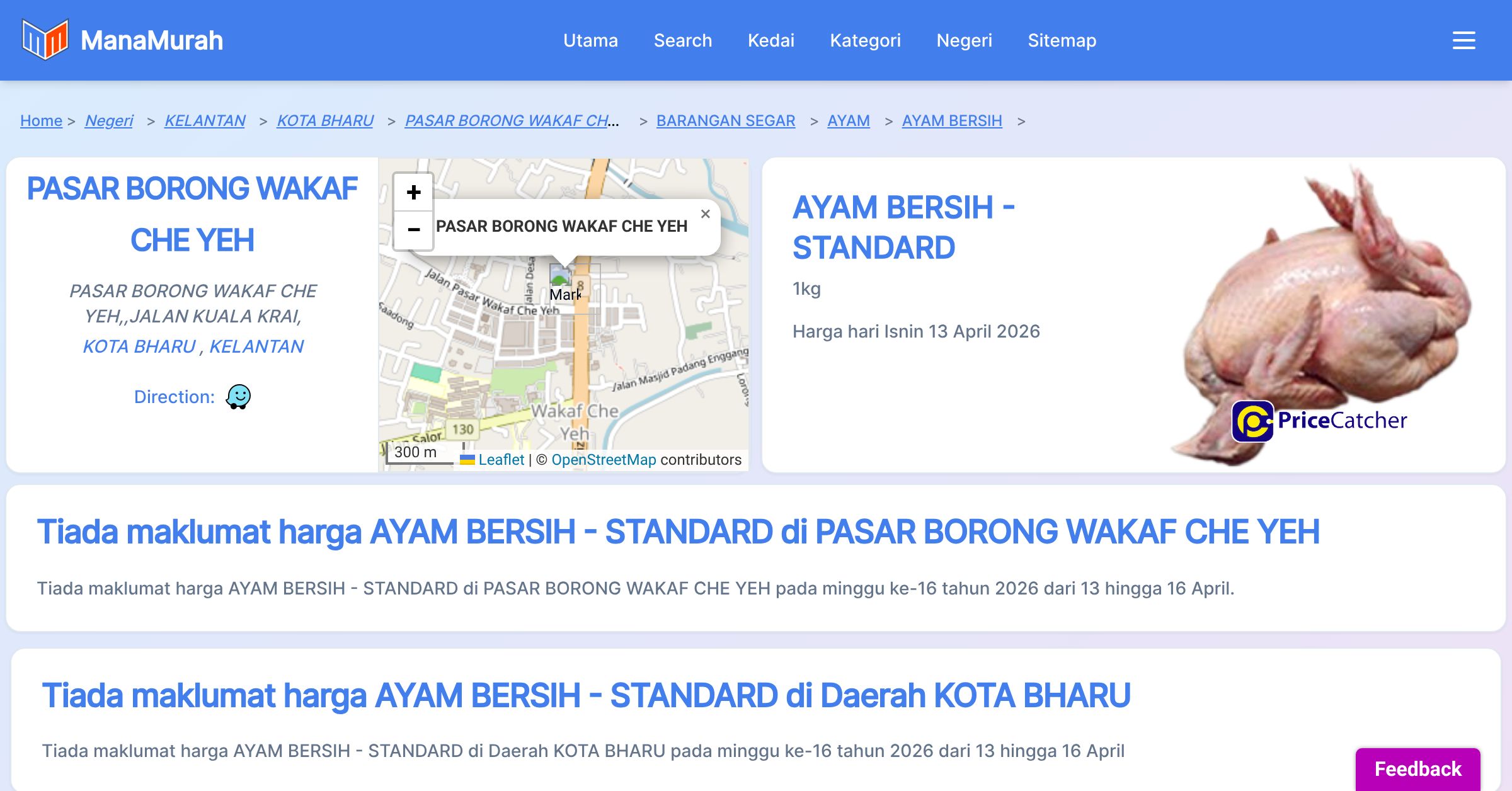 Tiada maklumat harga AYAM BERSIH - STANDARD di Daerah KOTA BHARU