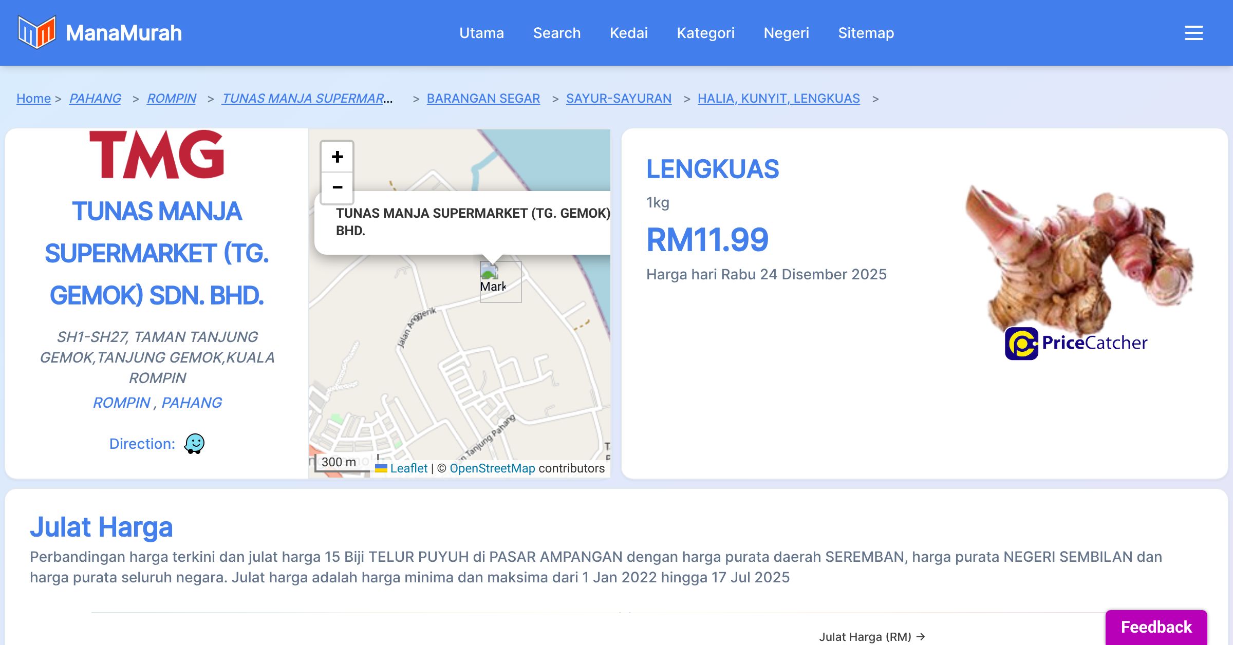 Senarai harga barang di TUNAS MANJA SUPERMARKET (TG. GEMOK) SDN. BHD.