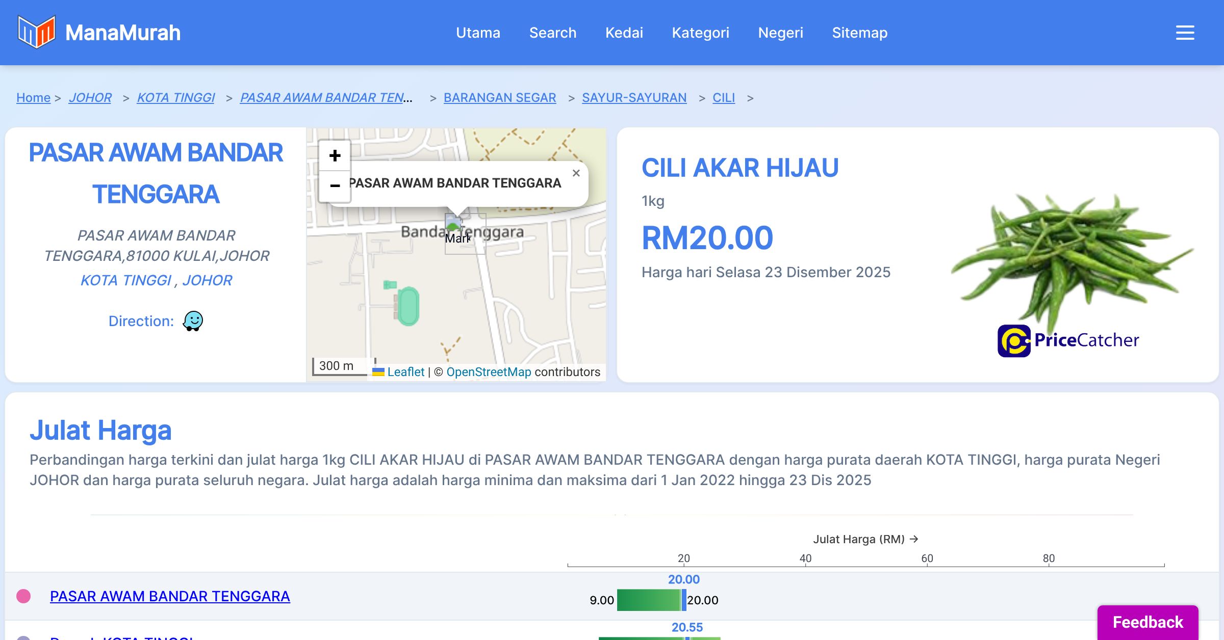 Senarai harga barang di PASAR AWAM BANDAR TENGGARA