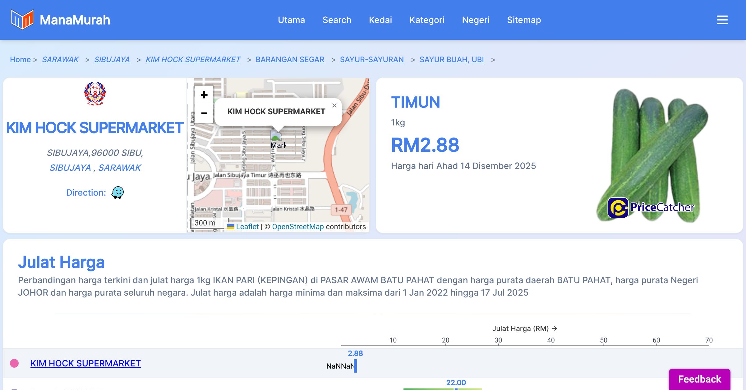 Tiada maklumat harga TIMUN di Daerah SIBUJAYA