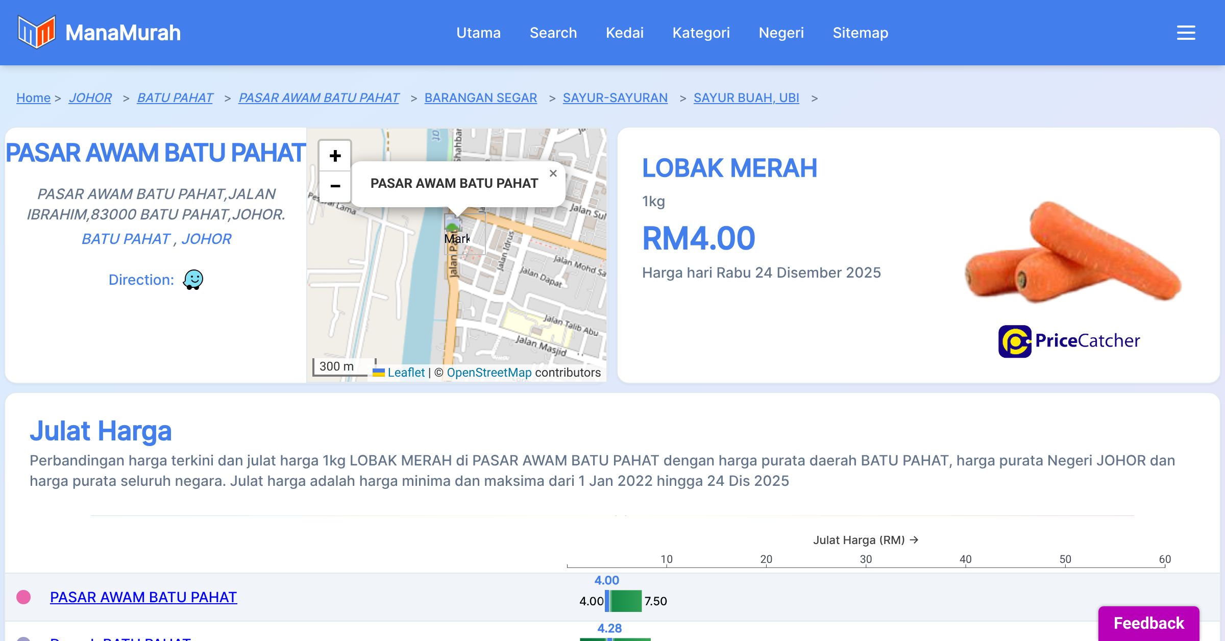 Senarai harga barang di PASAR AWAM BATU PAHAT