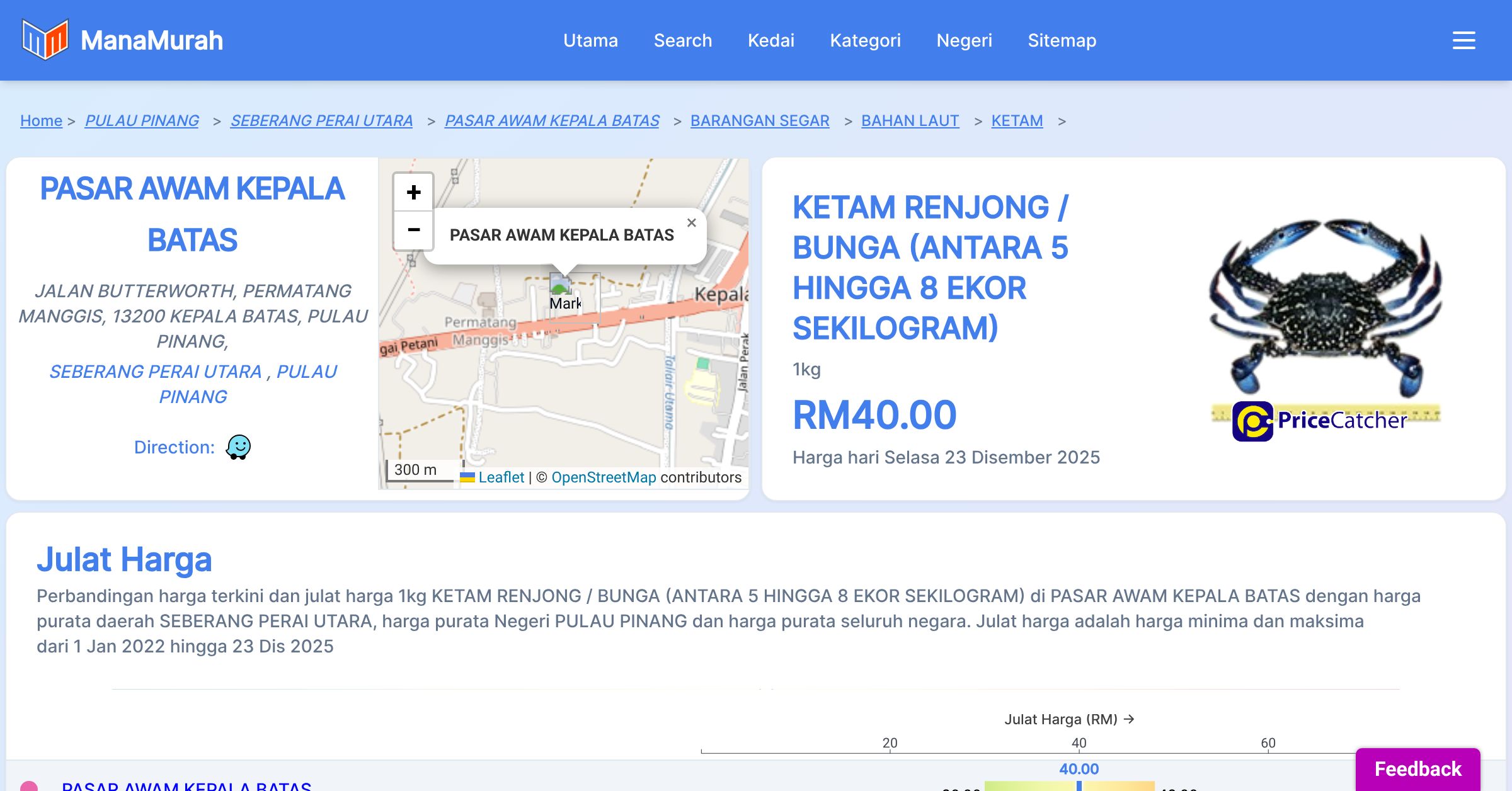 Senarai harga barang di PASAR AWAM KEPALA BATAS