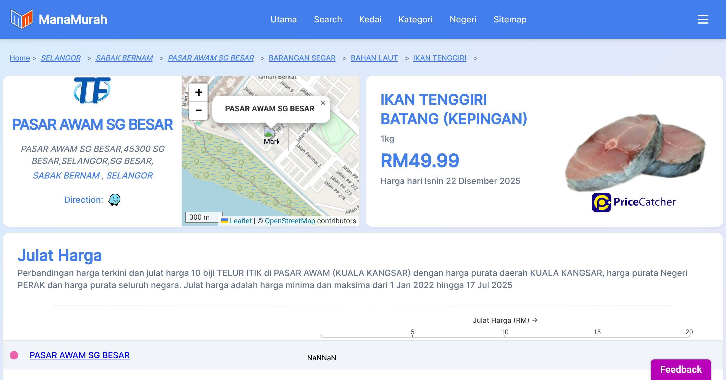 Tiada maklumat harga IKAN TENGGIRI BATANG (KEPINGAN) di Daerah SABAK BERNAM