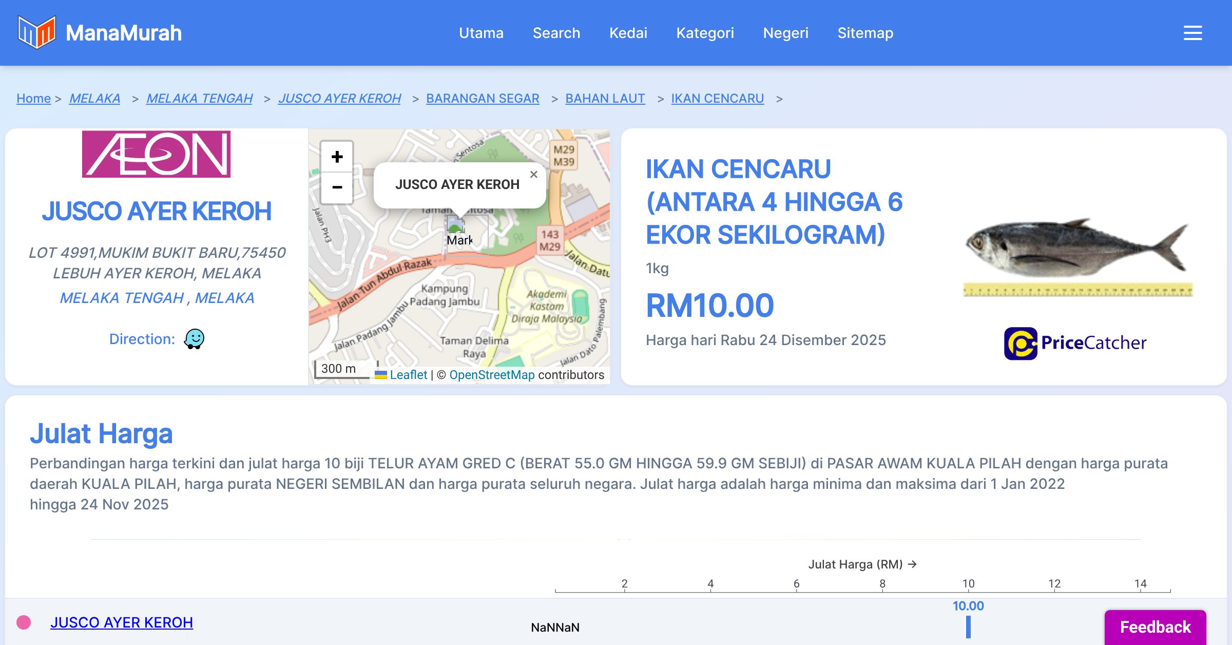 Tiada maklumat harga IKAN CENCARU (ANTARA 4 HINGGA 6 EKOR SEKILOGRAM) di Daerah MELAKA TENGAH pada minggu ke-52 tahun 2025 dari 22 hingga 24 Disember