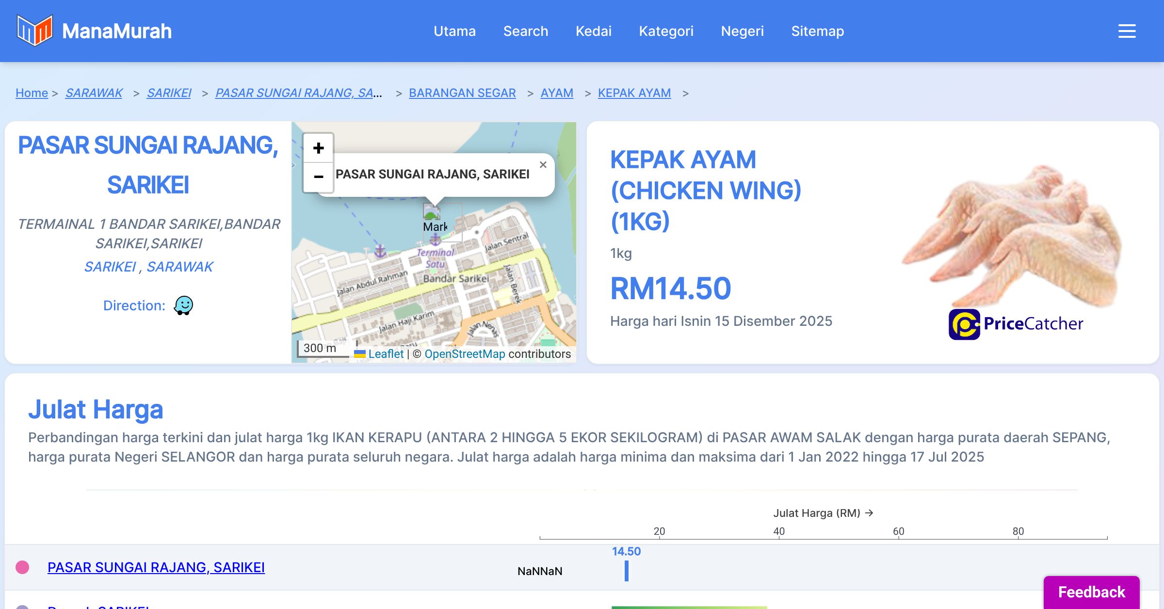 Senarai harga barang di PASAR SUNGAI RAJANG, SARIKEI