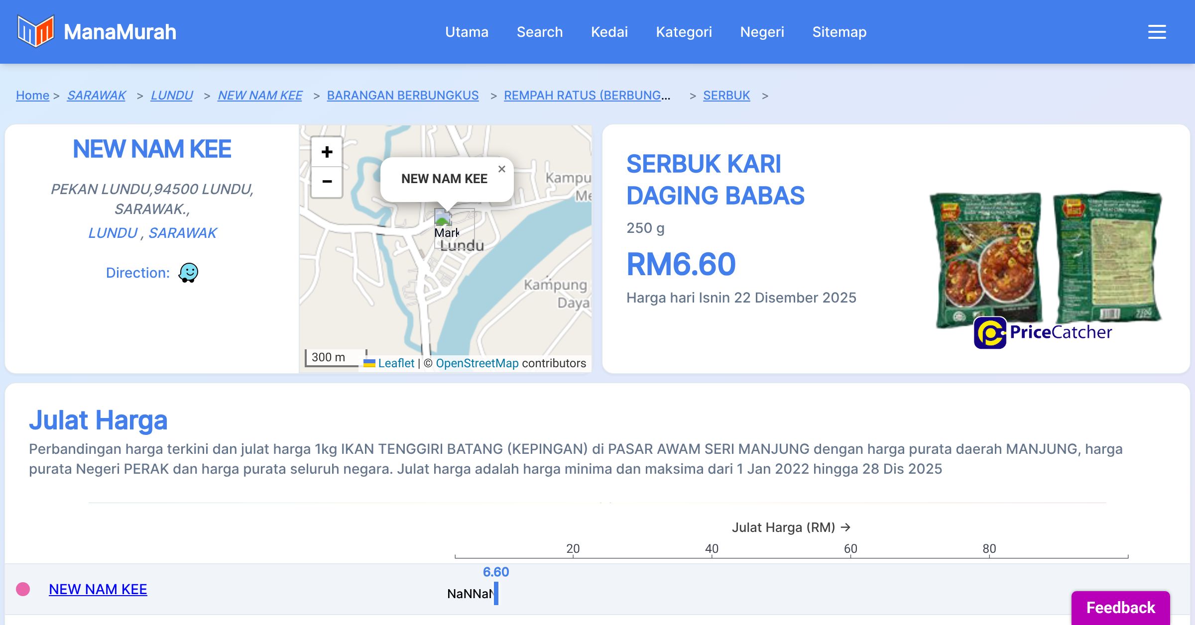 Tiada maklumat harga SERBUK KARI DAGING BABAS di Daerah LUNDU pada minggu ke-52 tahun 2025 dari 22 hingga 29 Disember