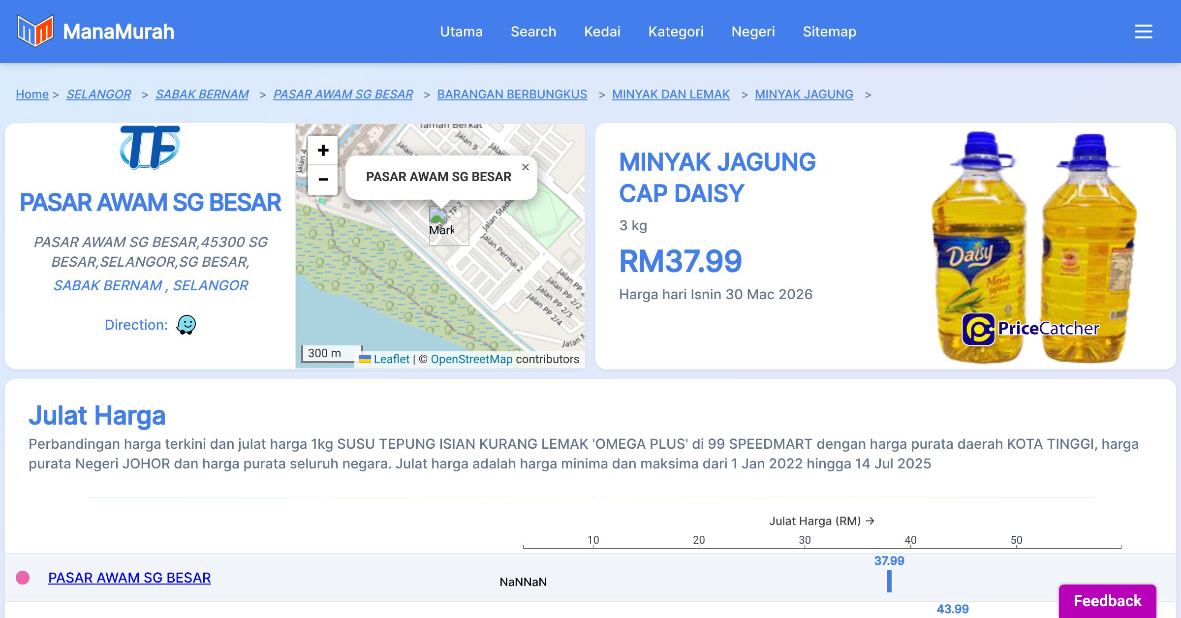 Tiada maklumat harga MINYAK JAGUNG CAP DAISY di Daerah SABAK BERNAM