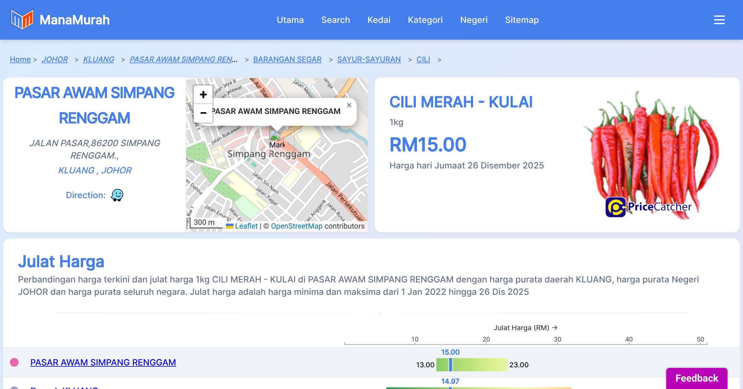 Senarai harga barang di PASAR AWAM SIMPANG RENGGAM