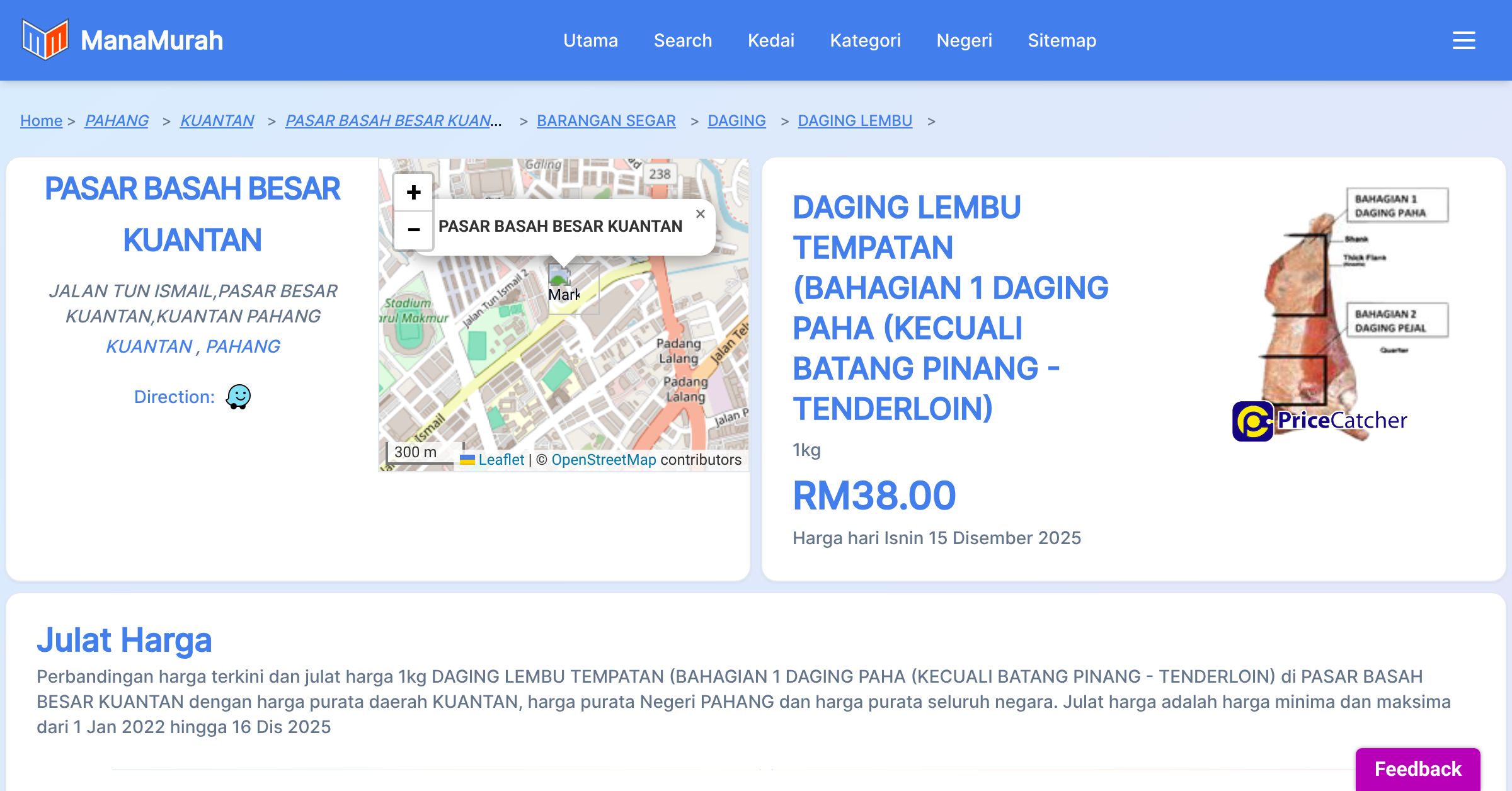 Senarai harga barang di PASAR BASAH BESAR KUANTAN