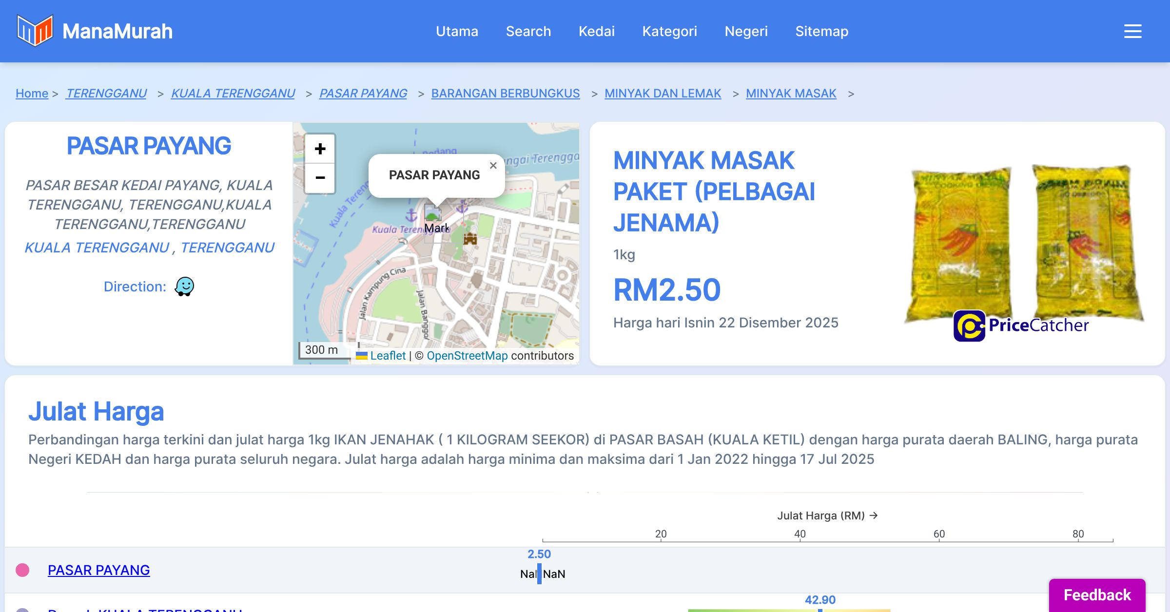 Tiada maklumat harga MINYAK MASAK PAKET (PELBAGAI JENAMA) di Daerah KUALA TERENGGANU