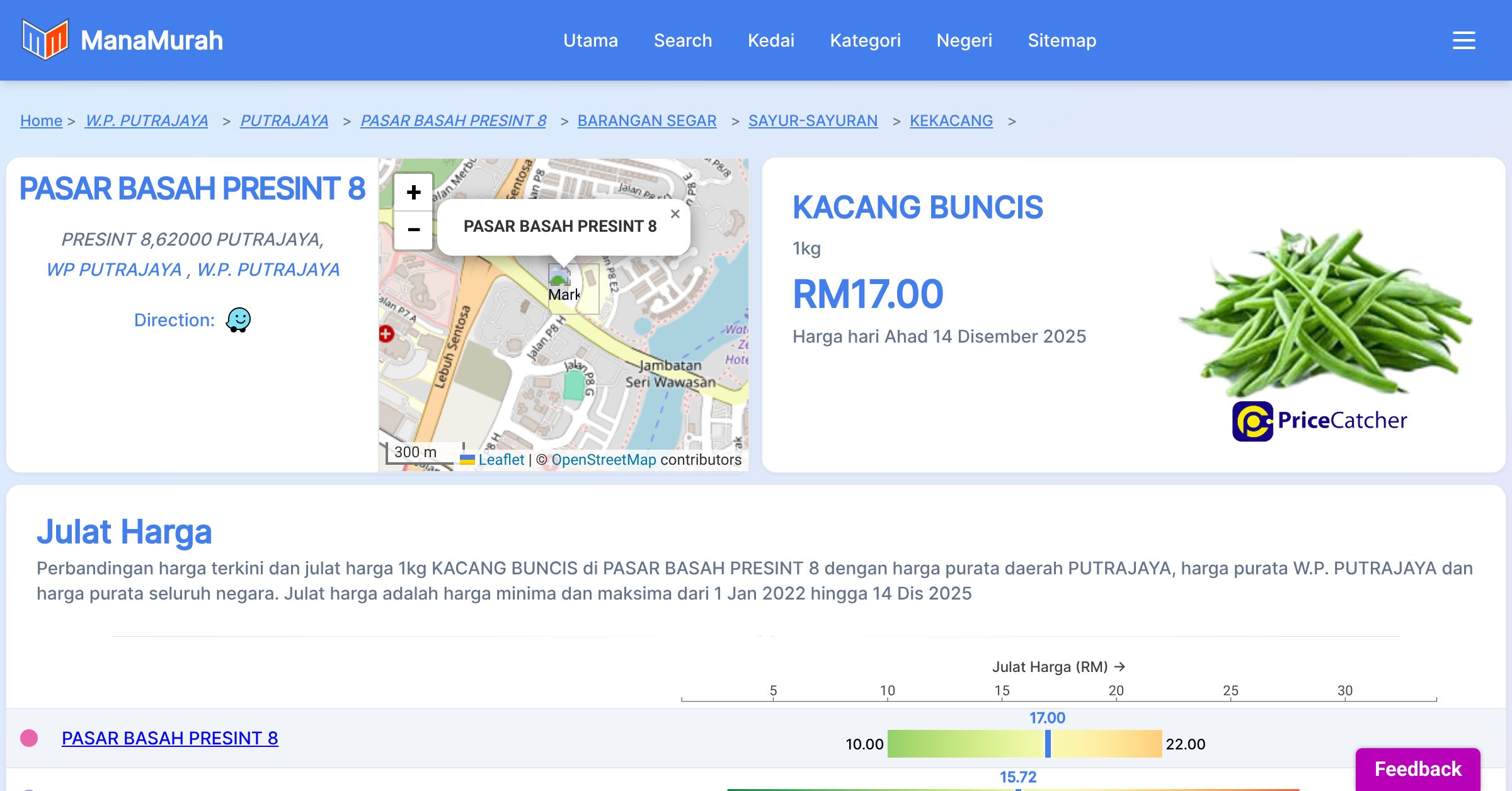 Tiada maklumat harga KACANG BUNCIS di PUTRAJAYA
