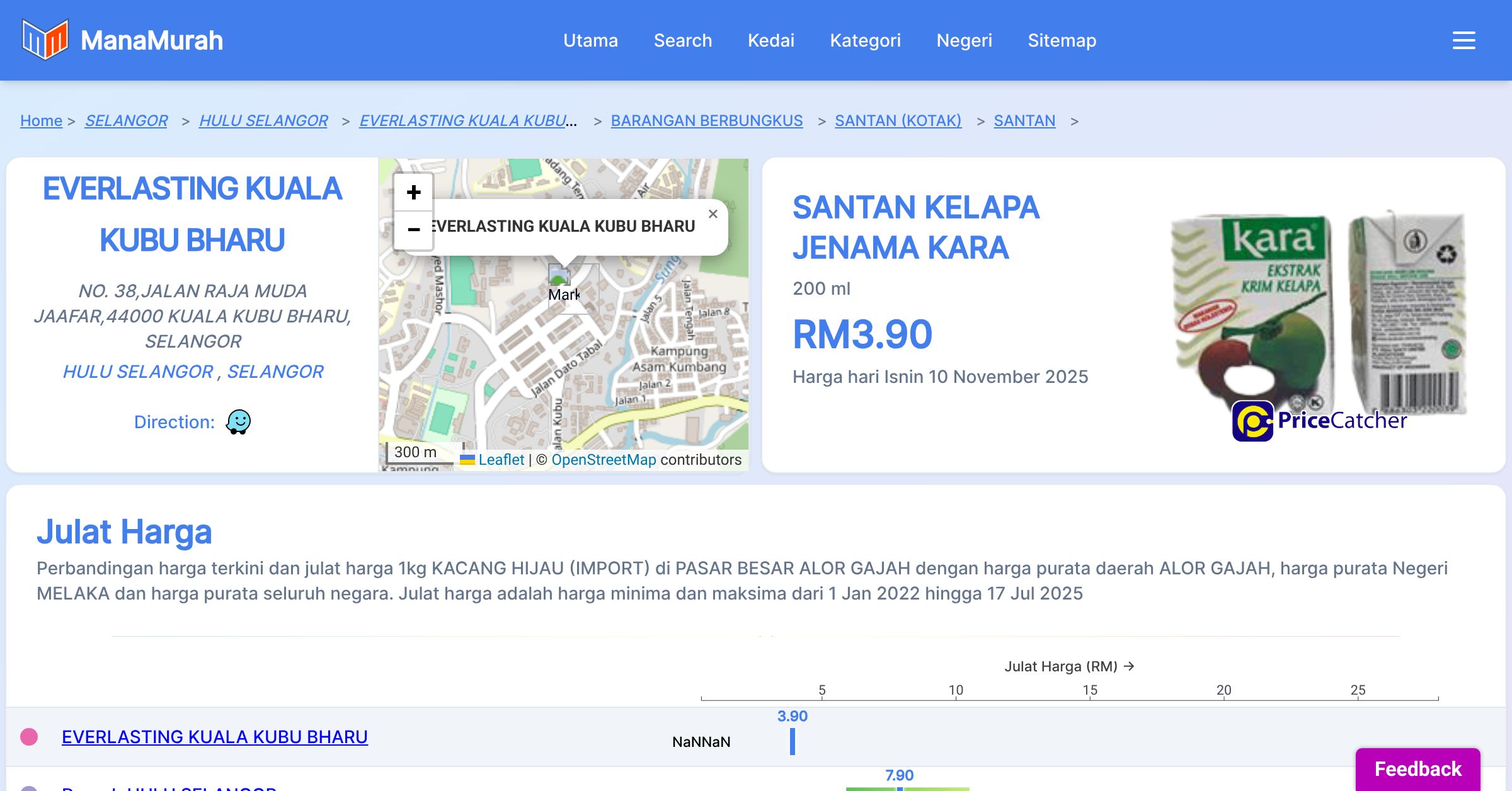 Tiada maklumat harga SANTAN KELAPA JENAMA KARA di Daerah HULU SELANGOR
