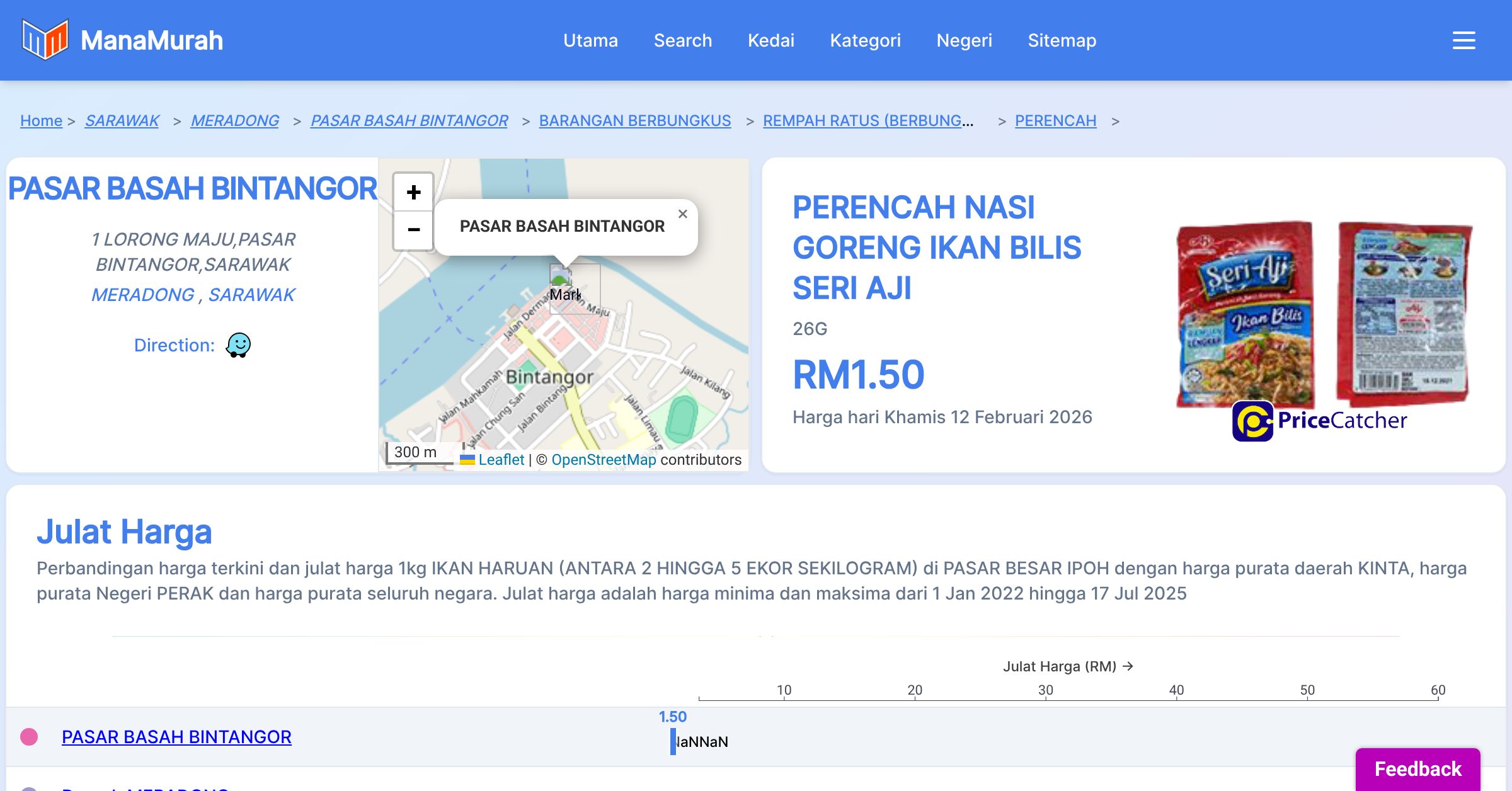 Tiada maklumat harga PERENCAH NASI GORENG IKAN BILIS SERI AJI di Daerah MERADONG pada minggu ke-7 tahun 2026 dari 9 Februari hingga 3 April