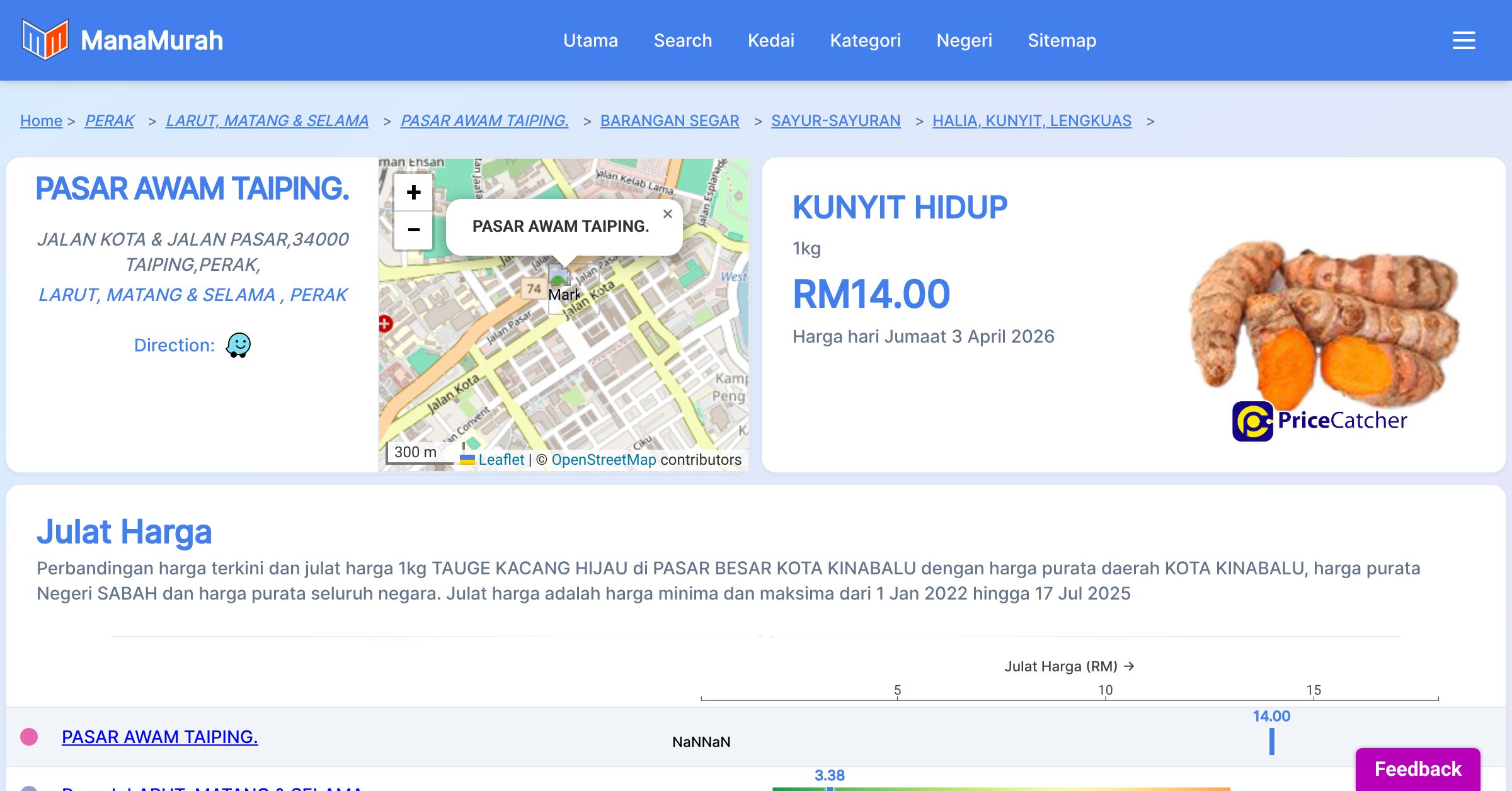 Senarai harga barang di PASAR AWAM TAIPING.