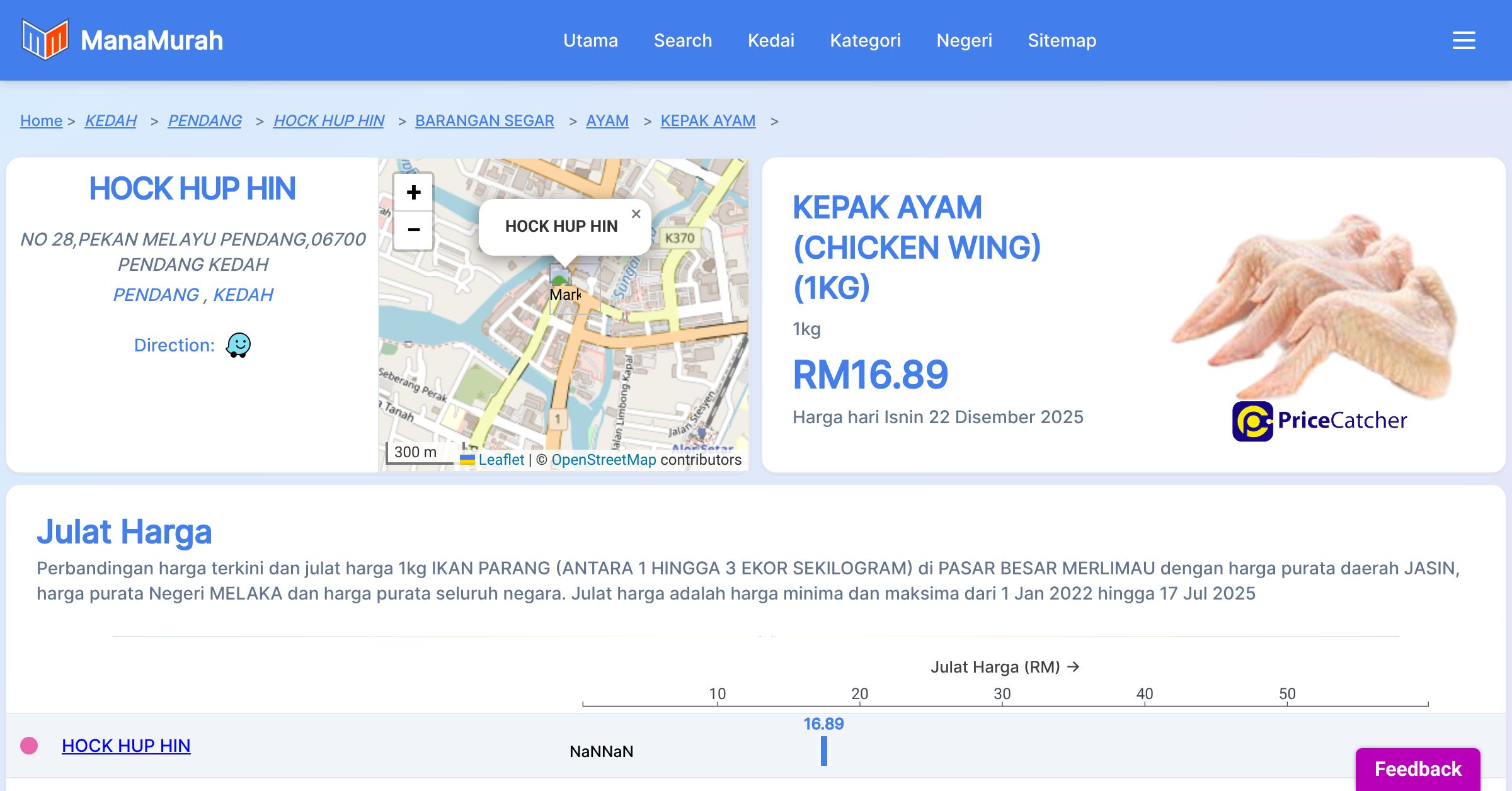 Harga hari Isnin 22 Disember 2025