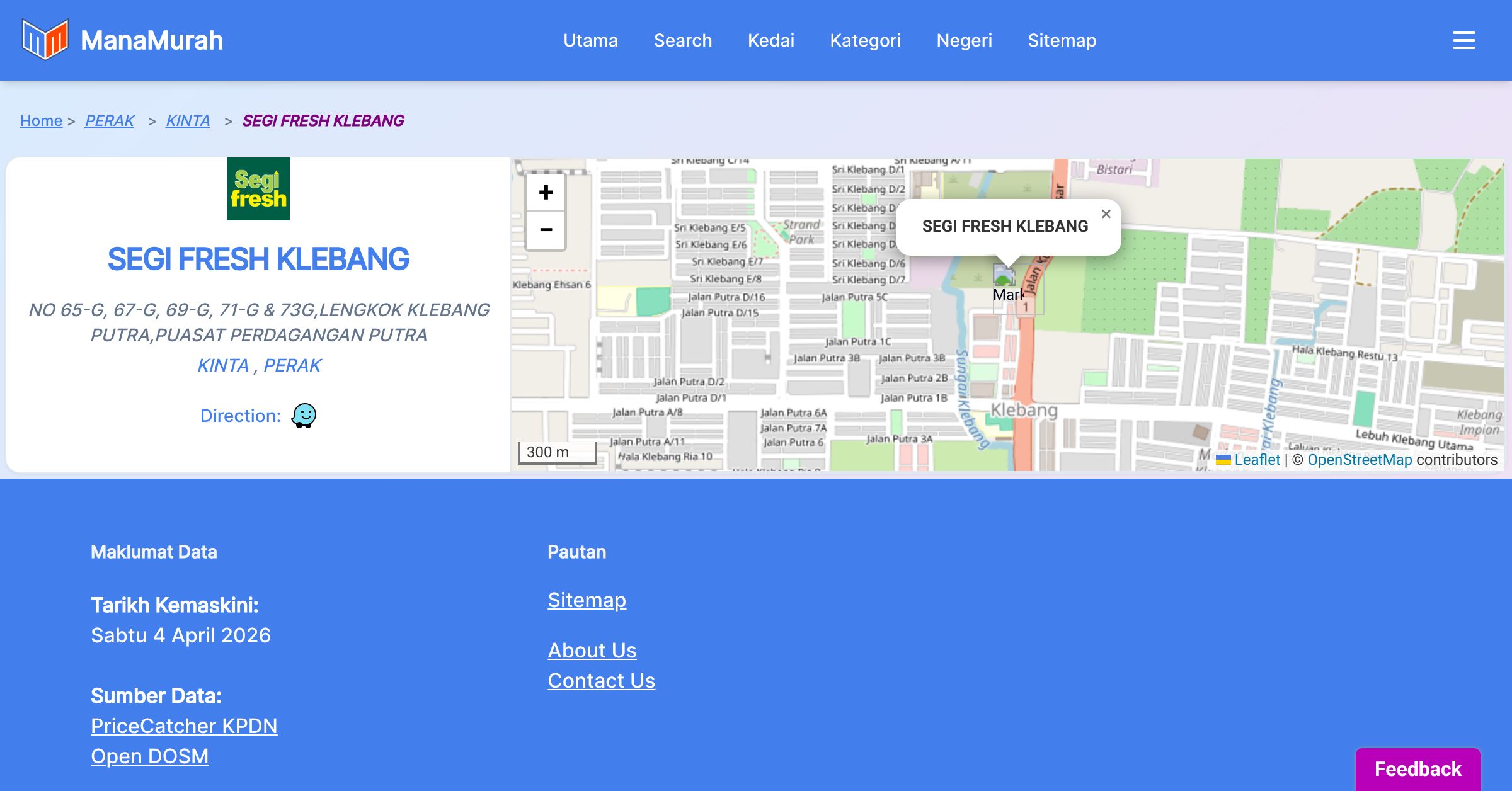 Prices are aggregated from public retail sources (including PriceCatcher KPDN and Open DOSM) and may not reflect real-time in-store prices. ManaMurah.com, DOSM, and KPDN assume no responsibility for any inaccuracies or omissions.