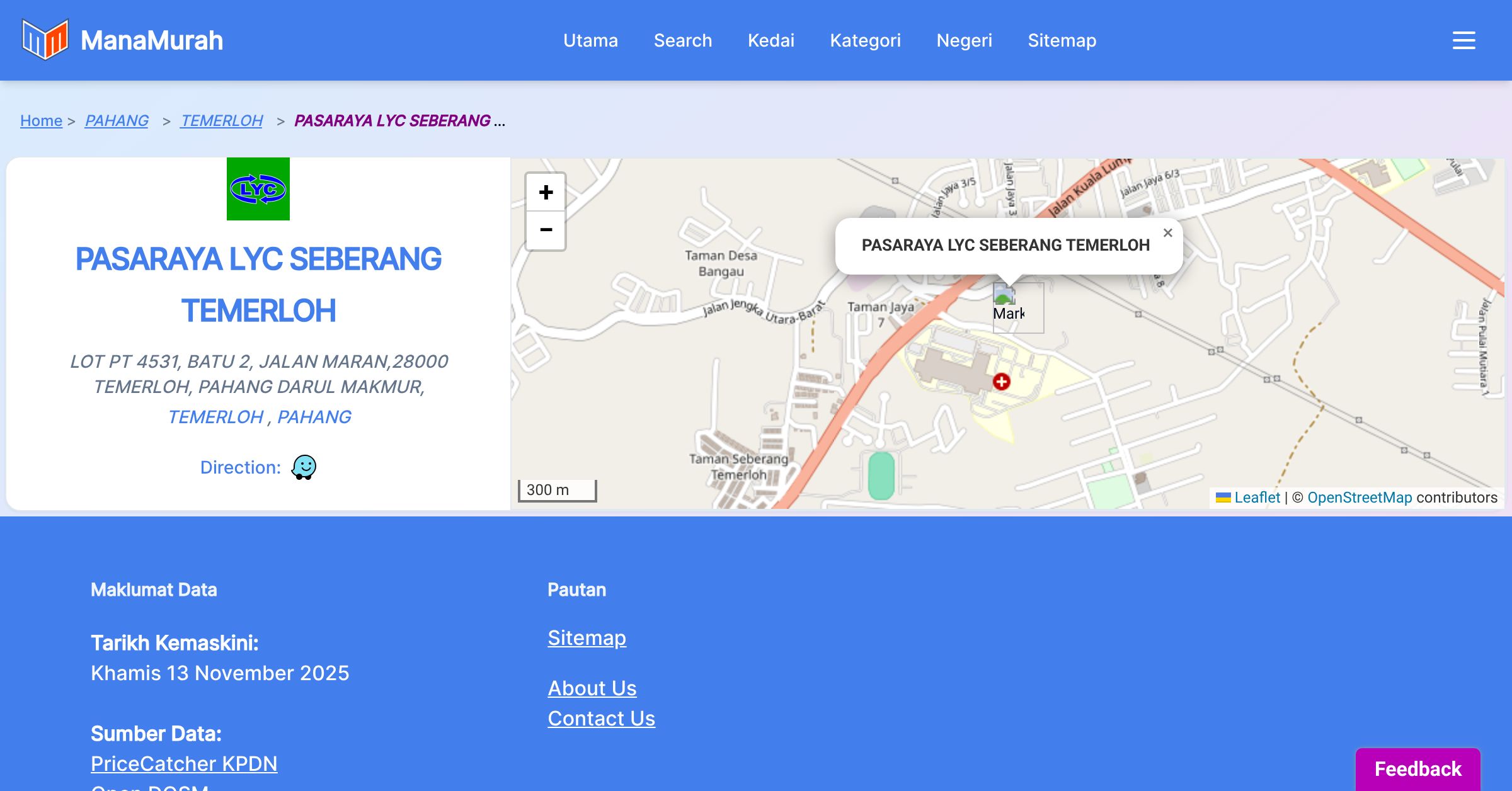 Prices are aggregated from public retail sources (including PriceCatcher KPDN and Open DOSM) and may not reflect real-time in-store prices. ManaMurah.com, DOSM, and KPDN assume no responsibility for any inaccuracies or omissions.