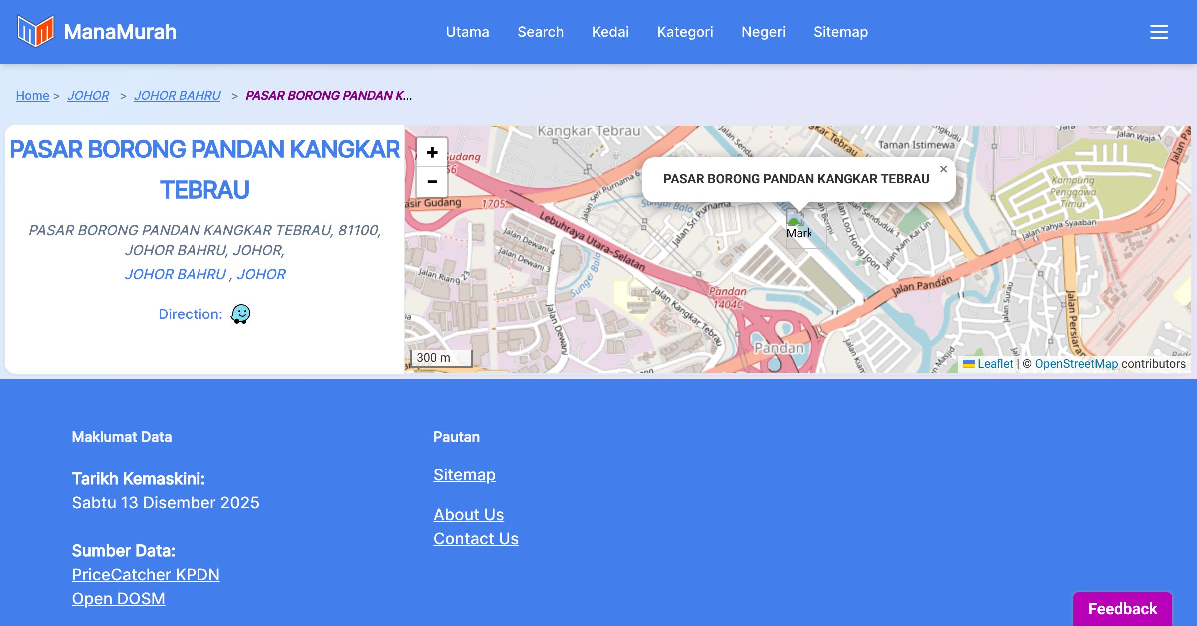 Prices are aggregated from public retail sources (including PriceCatcher KPDN and Open DOSM) and may not reflect real-time in-store prices. ManaMurah.com, DOSM, and KPDN assume no responsibility for any inaccuracies or omissions.