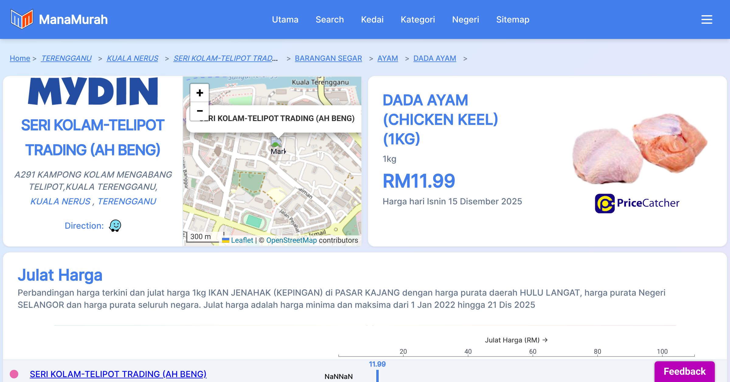 Tiada maklumat harga DADA AYAM (CHICKEN KEEL) (1KG) di Daerah KUALA NERUS pada minggu ke-51 tahun 2025 dari 15 hingga 21 Disember