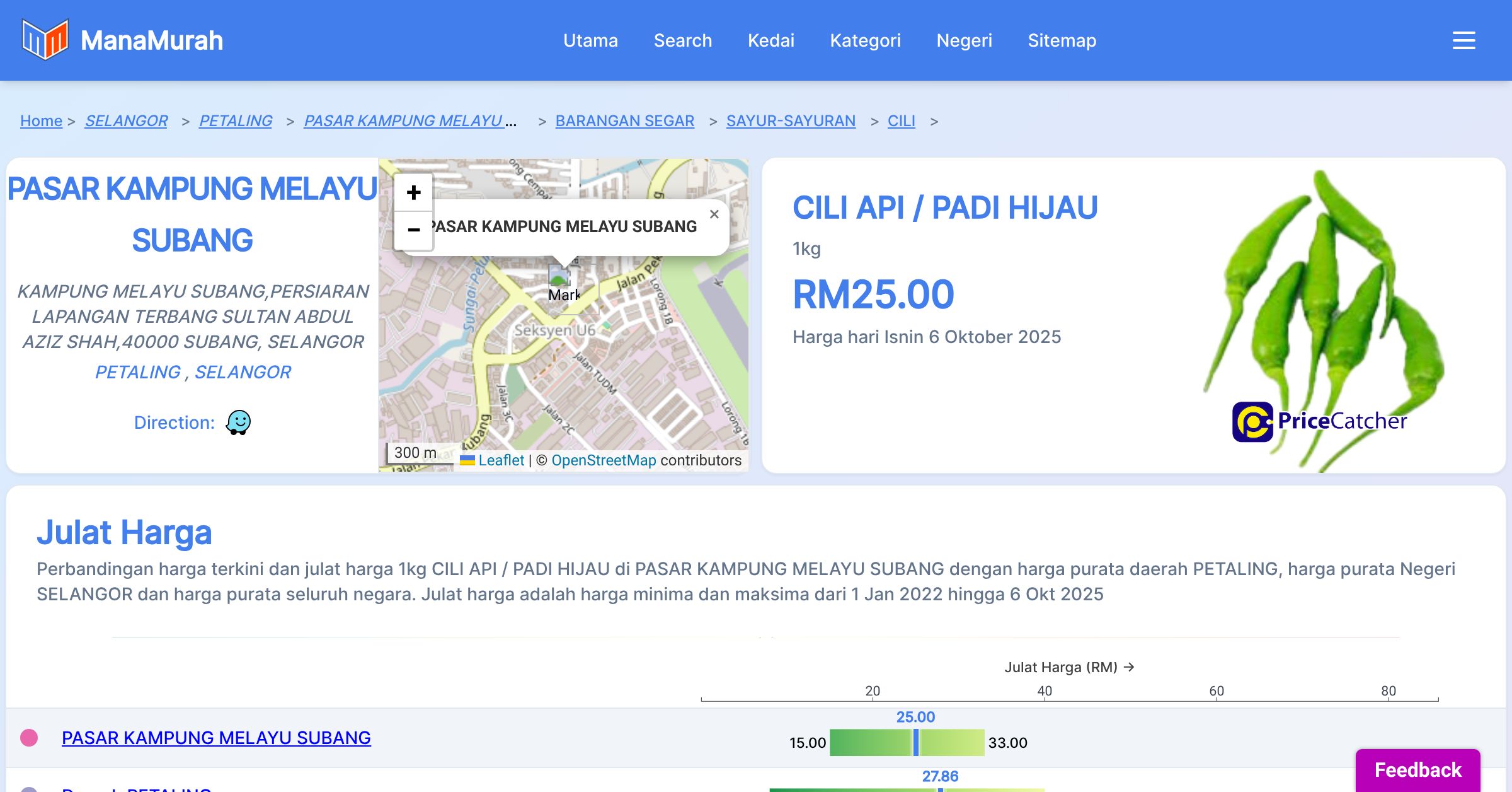 Senarai harga barang di PASAR KAMPUNG MELAYU SUBANG