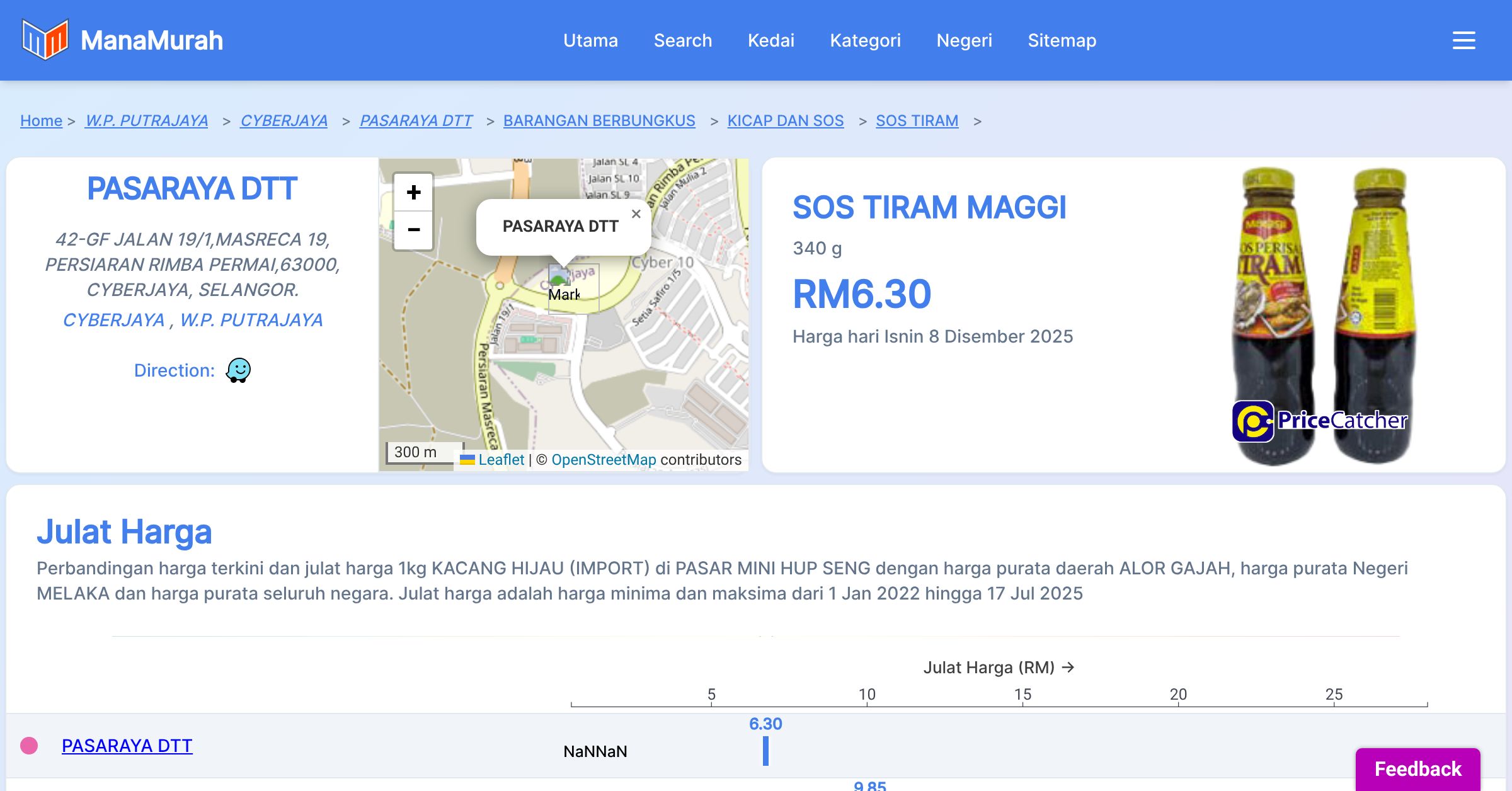 Senarai harga barang di TUNAS MANJA SUPERMARKET (TG. GEMOK) SDN. BHD.
